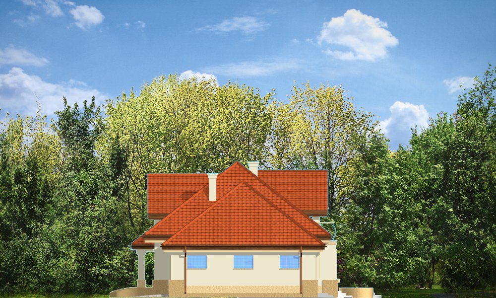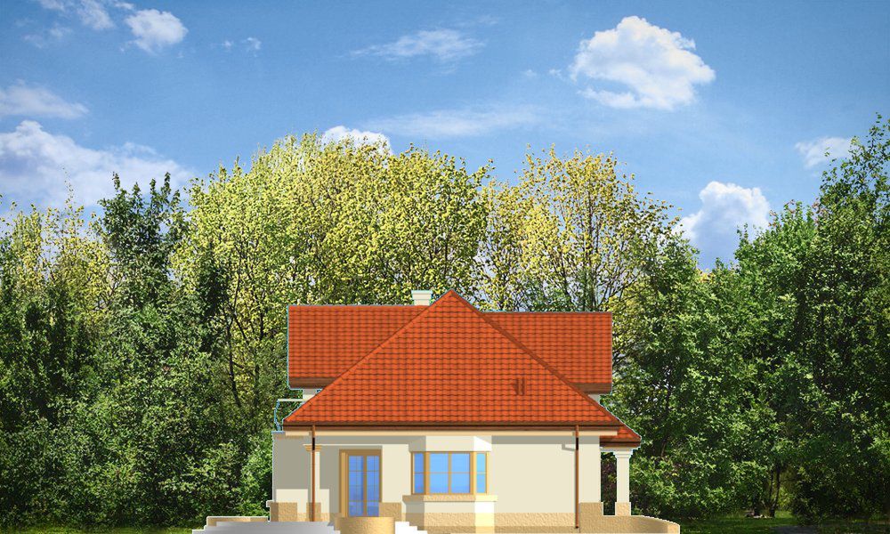 Graficzne opracowanie rzutów poglądowych widocznych na karcie projektu zostało wykonane przez Extradom.pl. Prezentowane przez Extradom.pl wizualizacje wykonane zostały przez autora projektu i należy poczytywać je jedynie za przykład i propozycję wykończenia, wizję architektoniczną autora projektu. Ostateczne wykończenie budynku może nastąpić na wiele sposobów. Szczegółowe rozwiązania zastosowane w oferowanej dokumentacji - w tym również ilość, lokalizacje i wygląd okien, drzwi, kominów - mogą w niewielkim stopniu różnić się od prezentowanej wizualizacji budynku.