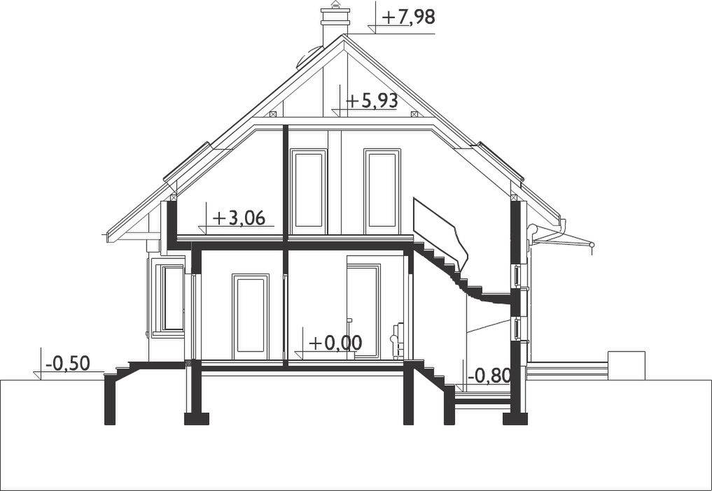 Technologia i konstrukcja: murowana – beton komórkowy. Ściany zewnętrzne: bloczki betonowe TERMALICA gr. 24 cm + docieplenie płyty FASROCK MAX lub FRONTROCK MAX E gr. 15 cm. Ściany wewnętrzne: bloczki TERMALICA gr. 24 i 12 cm. Strop: gęstożebrowy TERMALICA. Konstrukcja dachu: drewniana, jętkowa. Rodzaj schodów: żelbetowe. Typ ogrzewania: kocioł na gaz. Aneks na paliwo stałe: na zamówienie. Pokrycie dachu: dachówka ceramiczna. Elewacja: tynki silikonowe, silikatowe oraz mineralne.