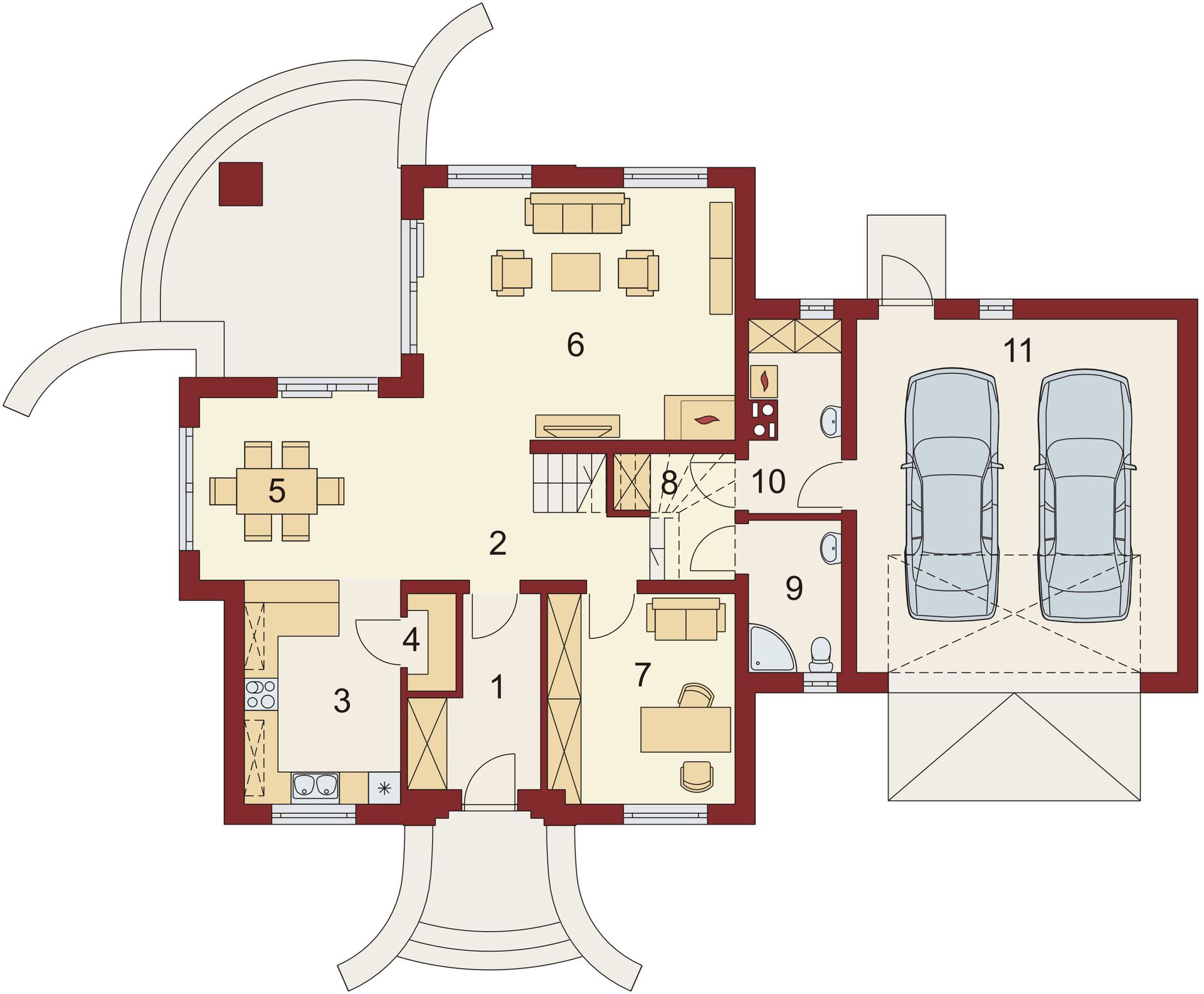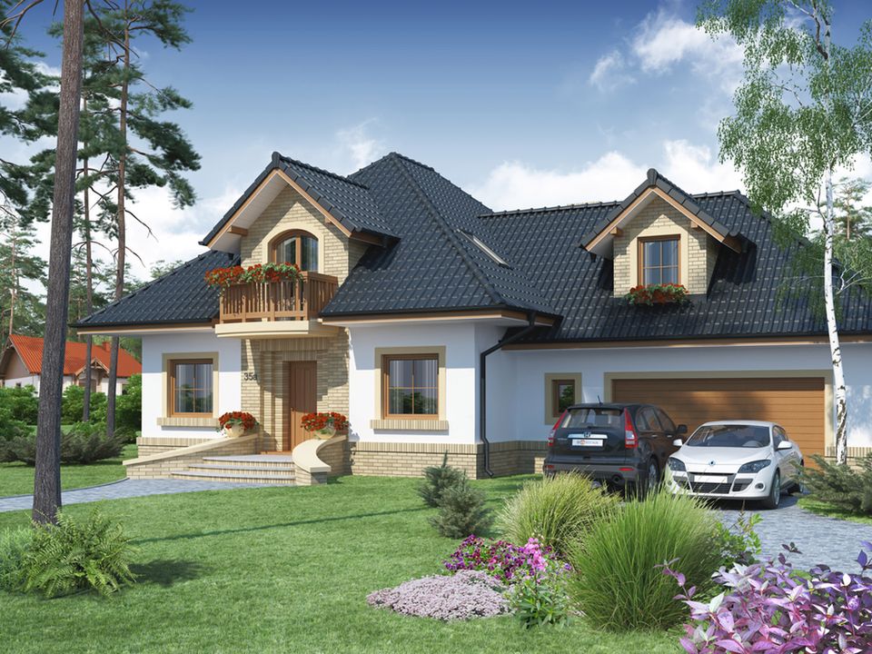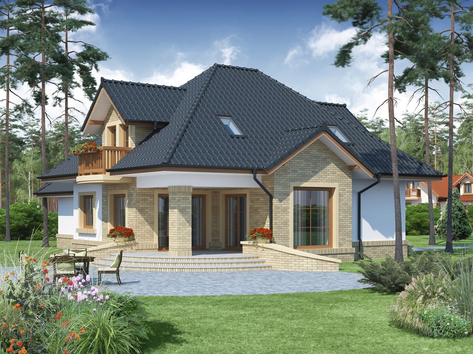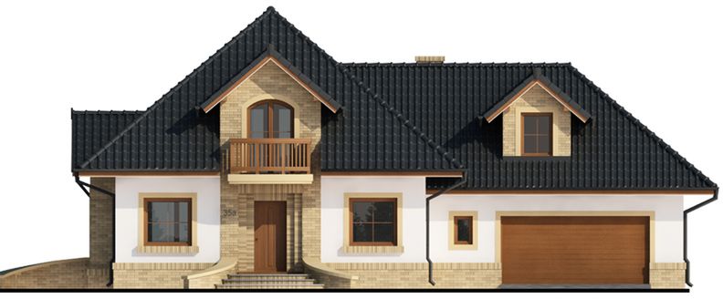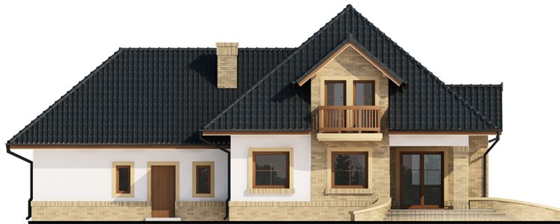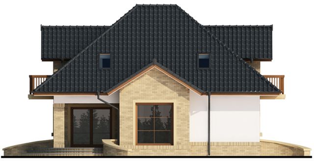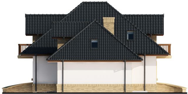 Graficzne opracowanie rzutów poglądowych widocznych na karcie projektu zostało wykonane przez Extradom.pl. Prezentowane przez Extradom.pl wizualizacje wykonane zostały przez autora projektu i należy poczytywać je jedynie za przykład i propozycję wykończenia, wizję architektoniczną autora projektu. Ostateczne wykończenie budynku może nastąpić na wiele sposobów. Szczegółowe rozwiązania zastosowane w oferowanej dokumentacji - w tym również ilość, lokalizacje i wygląd okien, drzwi, kominów - mogą w niewielkim stopniu różnić się od prezentowanej wizualizacji budynku.