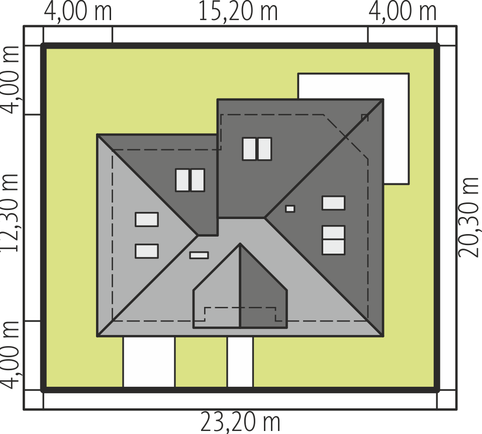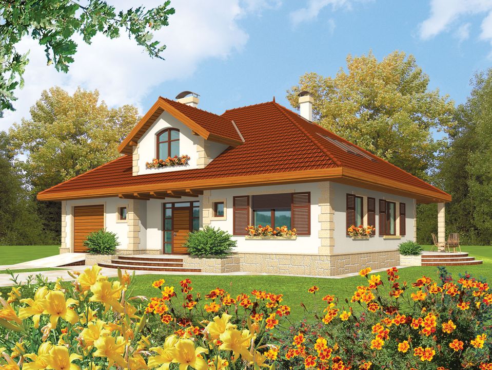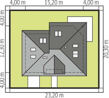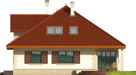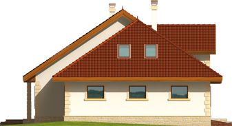 Graficzne opracowanie rzutów poglądowych widocznych na karcie projektu zostało wykonane przez Extradom.pl. Prezentowane przez Extradom.pl wizualizacje wykonane zostały przez autora projektu i należy poczytywać je jedynie za przykład i propozycję wykończenia, wizję architektoniczną autora projektu. Ostateczne wykończenie budynku może nastąpić na wiele sposobów. Szczegółowe rozwiązania zastosowane w oferowanej dokumentacji - w tym również ilość, lokalizacje i wygląd okien, drzwi, kominów - mogą w niewielkim stopniu różnić się od prezentowanej wizualizacji budynku.