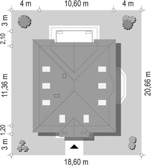 Graficzne opracowanie rzutów poglądowych widocznych na karcie projektu zostało wykonane przez Extradom.pl. Prezentowane przez Extradom.pl wizualizacje wykonane zostały przez autora projektu i należy poczytywać je jedynie za przykład i propozycję wykończenia, wizję architektoniczną autora projektu. Ostateczne wykończenie budynku może nastąpić na wiele sposobów. Szczegółowe rozwiązania zastosowane w oferowanej dokumentacji - w tym również ilość, lokalizacje i wygląd okien, drzwi, kominów - mogą w niewielkim stopniu różnić się od prezentowanej wizualizacji budynku.