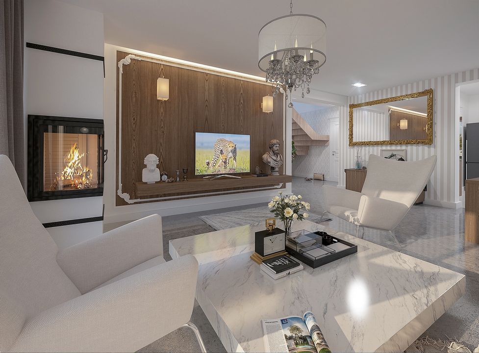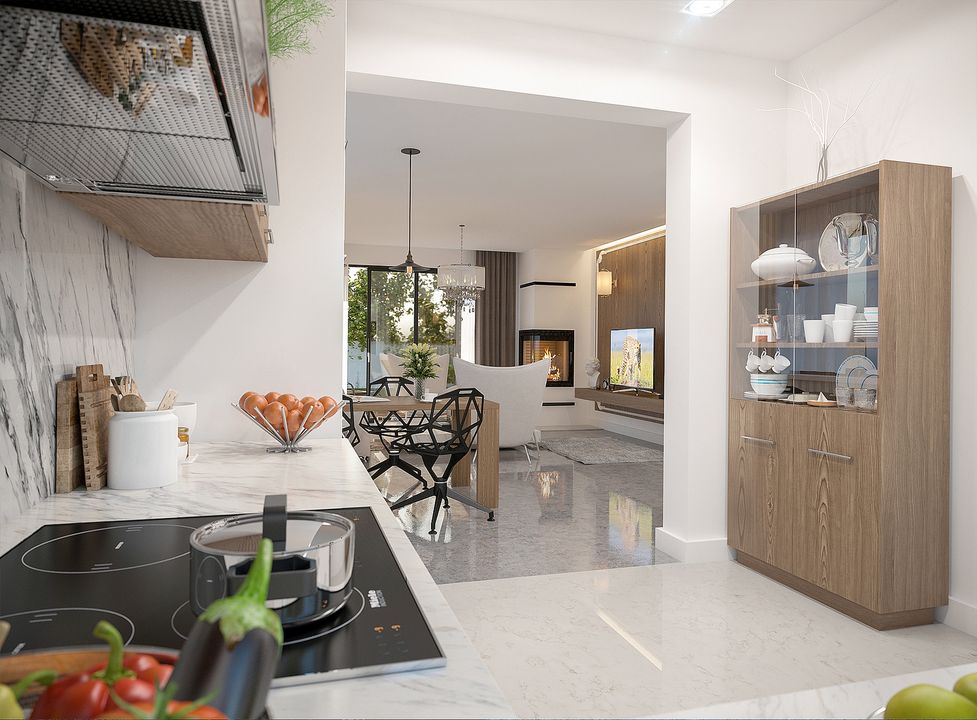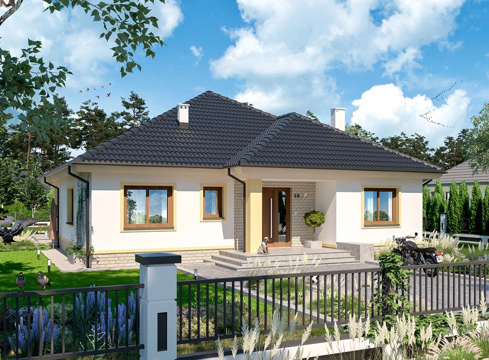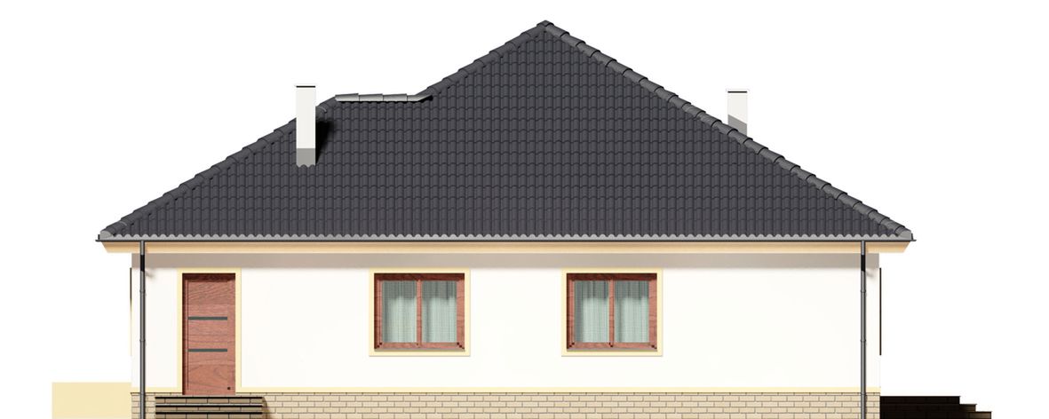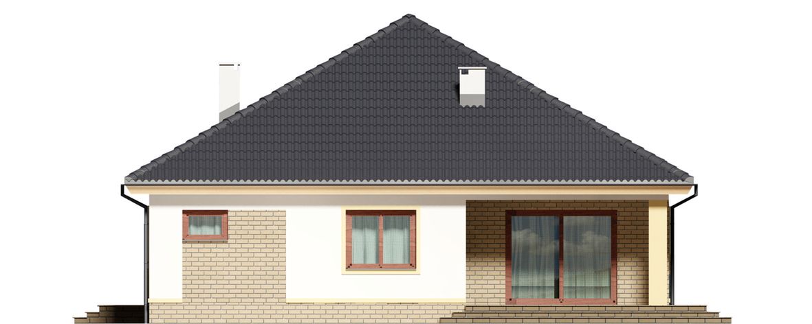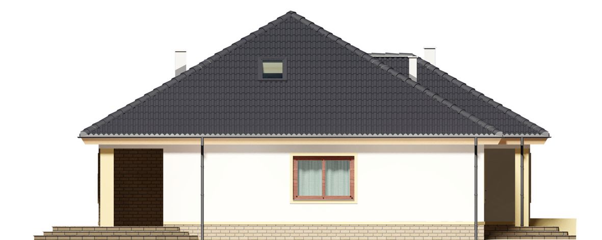 Graficzne opracowanie rzutów poglądowych widocznych na karcie projektu zostało wykonane przez Extradom.pl. Prezentowane przez Extradom.pl wizualizacje wykonane zostały przez autora projektu i należy poczytywać je jedynie za przykład i propozycję wykończenia, wizję architektoniczną autora projektu. Ostateczne wykończenie budynku może nastąpić na wiele sposobów. Szczegółowe rozwiązania zastosowane w oferowanej dokumentacji - w tym również ilość, lokalizacje i wygląd okien, drzwi, kominów - mogą w niewielkim stopniu różnić się od prezentowanej wizualizacji budynku.