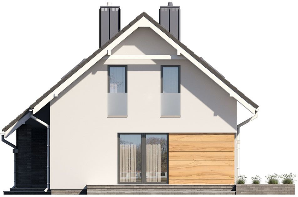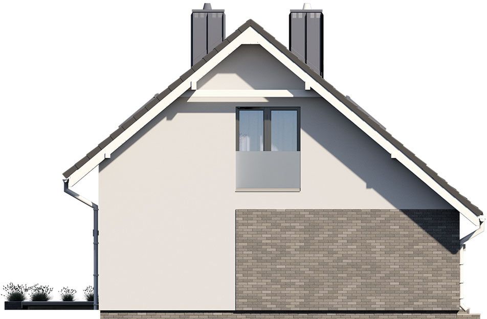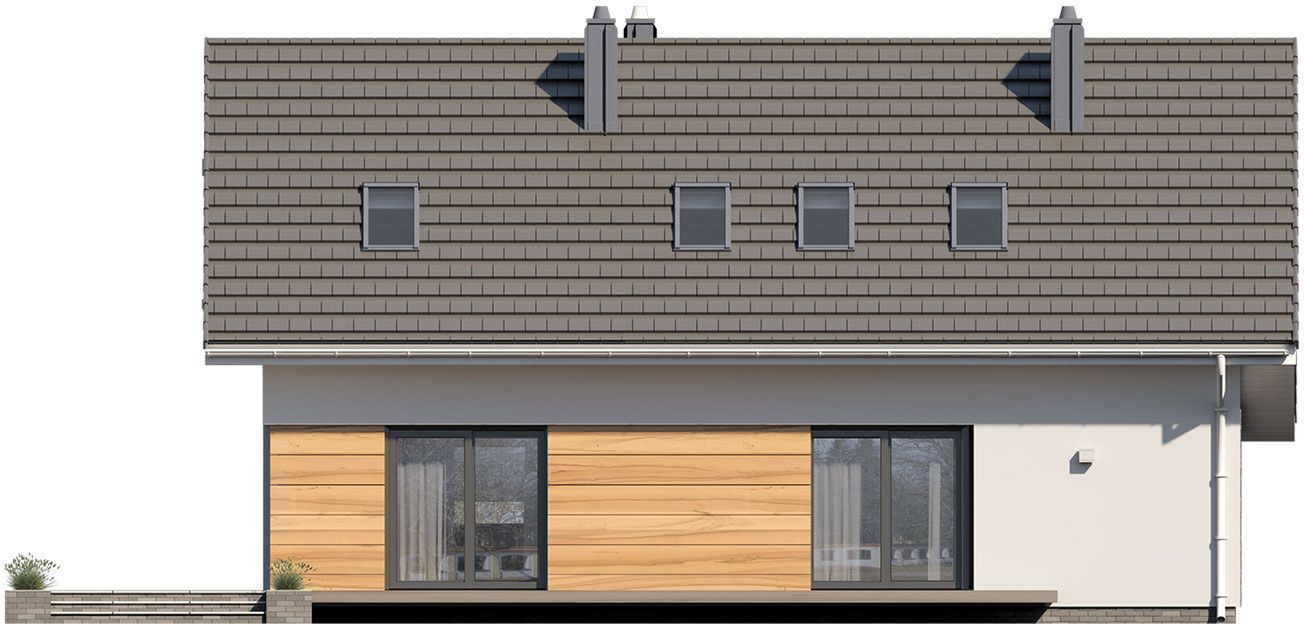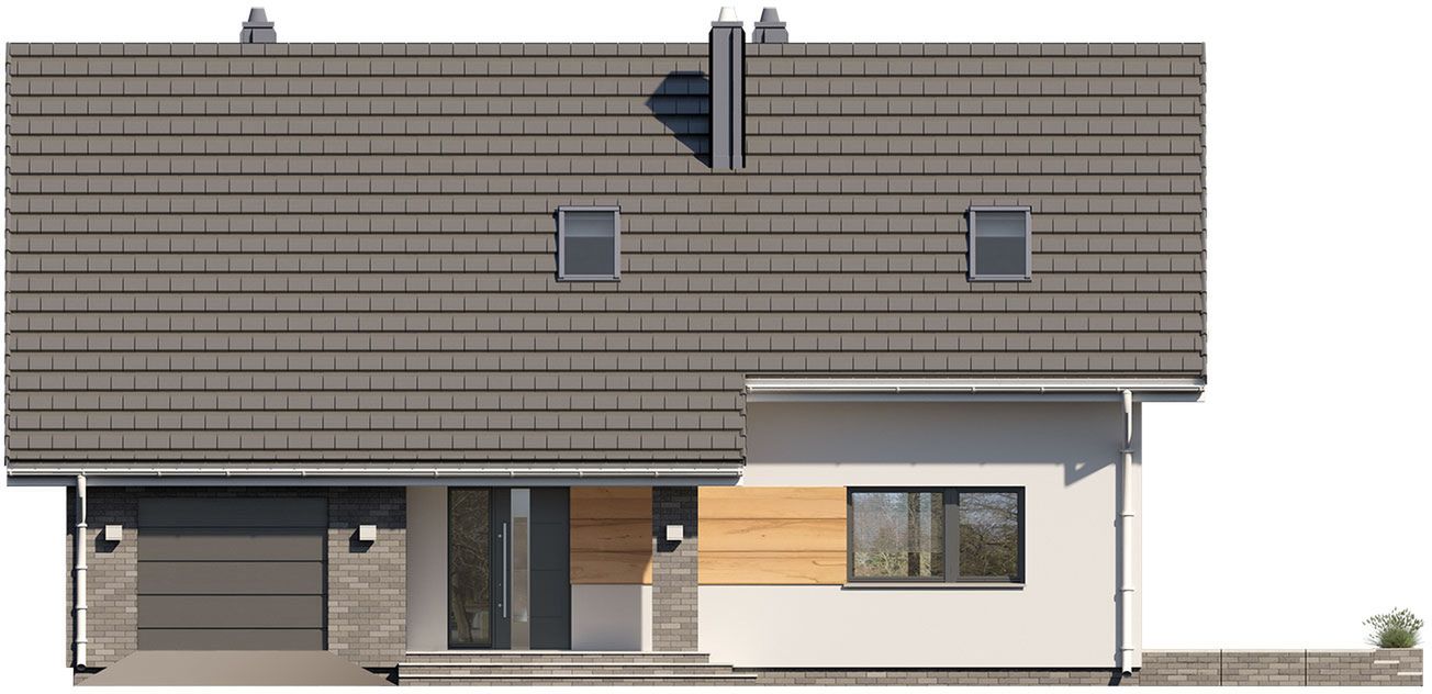 Graficzne opracowanie rzutów poglądowych widocznych na karcie projektu zostało wykonane przez Extradom.pl. Prezentowane przez Extradom.pl wizualizacje wykonane zostały przez autora projektu i należy poczytywać je jedynie za przykład i propozycję wykończenia, wizję architektoniczną autora projektu. Ostateczne wykończenie budynku może nastąpić na wiele sposobów. Szczegółowe rozwiązania zastosowane w oferowanej dokumentacji - w tym również ilość, lokalizacje i wygląd okien, drzwi, kominów - mogą w niewielkim stopniu różnić się od prezentowanej wizualizacji budynku.