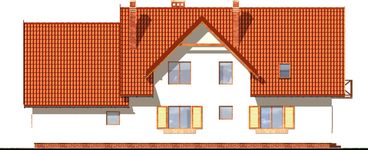 Graficzne opracowanie rzutów poglądowych widocznych na karcie projektu zostało wykonane przez Extradom.pl. Prezentowane przez Extradom.pl wizualizacje wykonane zostały przez autora projektu i należy poczytywać je jedynie za przykład i propozycję wykończenia, wizję architektoniczną autora projektu. Ostateczne wykończenie budynku może nastąpić na wiele sposobów. Szczegółowe rozwiązania zastosowane w oferowanej dokumentacji - w tym również ilość, lokalizacje i wygląd okien, drzwi, kominów - mogą w niewielkim stopniu różnić się od prezentowanej wizualizacji budynku.