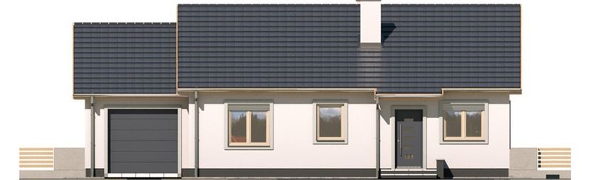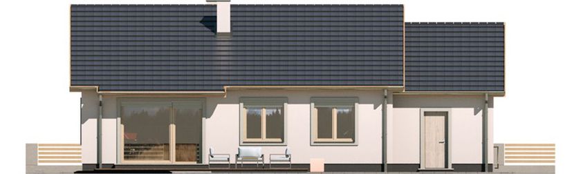 Graficzne opracowanie rzutów poglądowych widocznych na karcie projektu zostało wykonane przez Extradom.pl. Prezentowane przez Extradom.pl wizualizacje wykonane zostały przez autora projektu i należy poczytywać je jedynie za przykład i propozycję wykończenia, wizję architektoniczną autora projektu. Ostateczne wykończenie budynku może nastąpić na wiele sposobów. Szczegółowe rozwiązania zastosowane w oferowanej dokumentacji - w tym również ilość, lokalizacje i wygląd okien, drzwi, kominów - mogą w niewielkim stopniu różnić się od prezentowanej wizualizacji budynku.