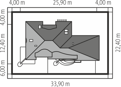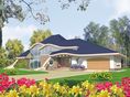 Graficzne opracowanie rzutów poglądowych widocznych na karcie projektu zostało wykonane przez Extradom.pl. Prezentowane przez Extradom.pl wizualizacje wykonane zostały przez autora projektu i należy poczytywać je jedynie za przykład i propozycję wykończenia, wizję architektoniczną autora projektu. Ostateczne wykończenie budynku może nastąpić na wiele sposobów. Szczegółowe rozwiązania zastosowane w oferowanej dokumentacji - w tym również ilość, lokalizacje i wygląd okien, drzwi, kominów - mogą w niewielkim stopniu różnić się od prezentowanej wizualizacji budynku.