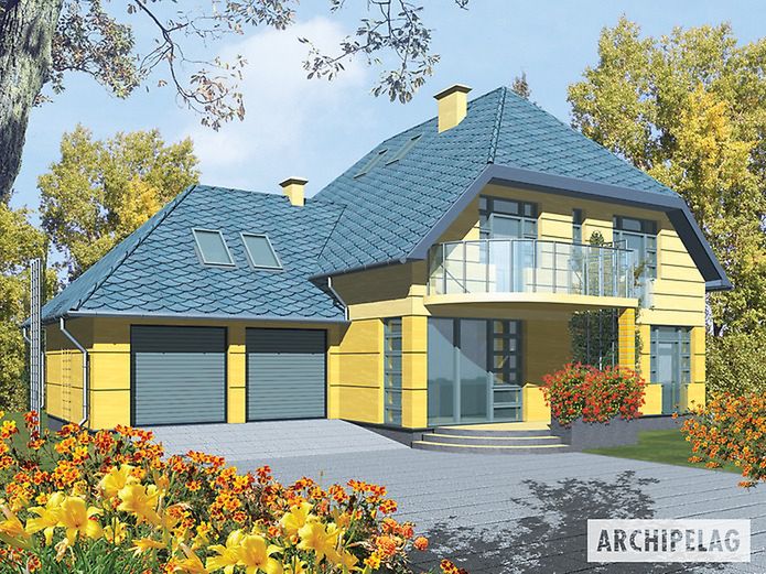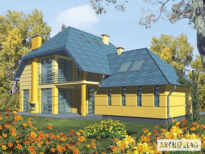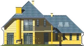 Graficzne opracowanie rzutów poglądowych widocznych na karcie projektu zostało wykonane przez Extradom.pl. Prezentowane przez Extradom.pl wizualizacje wykonane zostały przez autora projektu i należy poczytywać je jedynie za przykład i propozycję wykończenia, wizję architektoniczną autora projektu. Ostateczne wykończenie budynku może nastąpić na wiele sposobów. Szczegółowe rozwiązania zastosowane w oferowanej dokumentacji - w tym również ilość, lokalizacje i wygląd okien, drzwi, kominów - mogą w niewielkim stopniu różnić się od prezentowanej wizualizacji budynku.