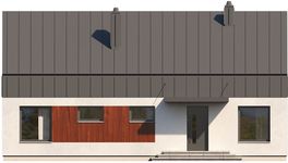 Graficzne opracowanie rzutów poglądowych widocznych na karcie projektu zostało wykonane przez Extradom.pl. Prezentowane przez Extradom.pl wizualizacje wykonane zostały przez autora projektu i należy poczytywać je jedynie za przykład i propozycję wykończenia, wizję architektoniczną autora projektu. Ostateczne wykończenie budynku może nastąpić na wiele sposobów. Szczegółowe rozwiązania zastosowane w oferowanej dokumentacji - w tym również ilość, lokalizacje i wygląd okien, drzwi, kominów - mogą w niewielkim stopniu różnić się od prezentowanej wizualizacji budynku.