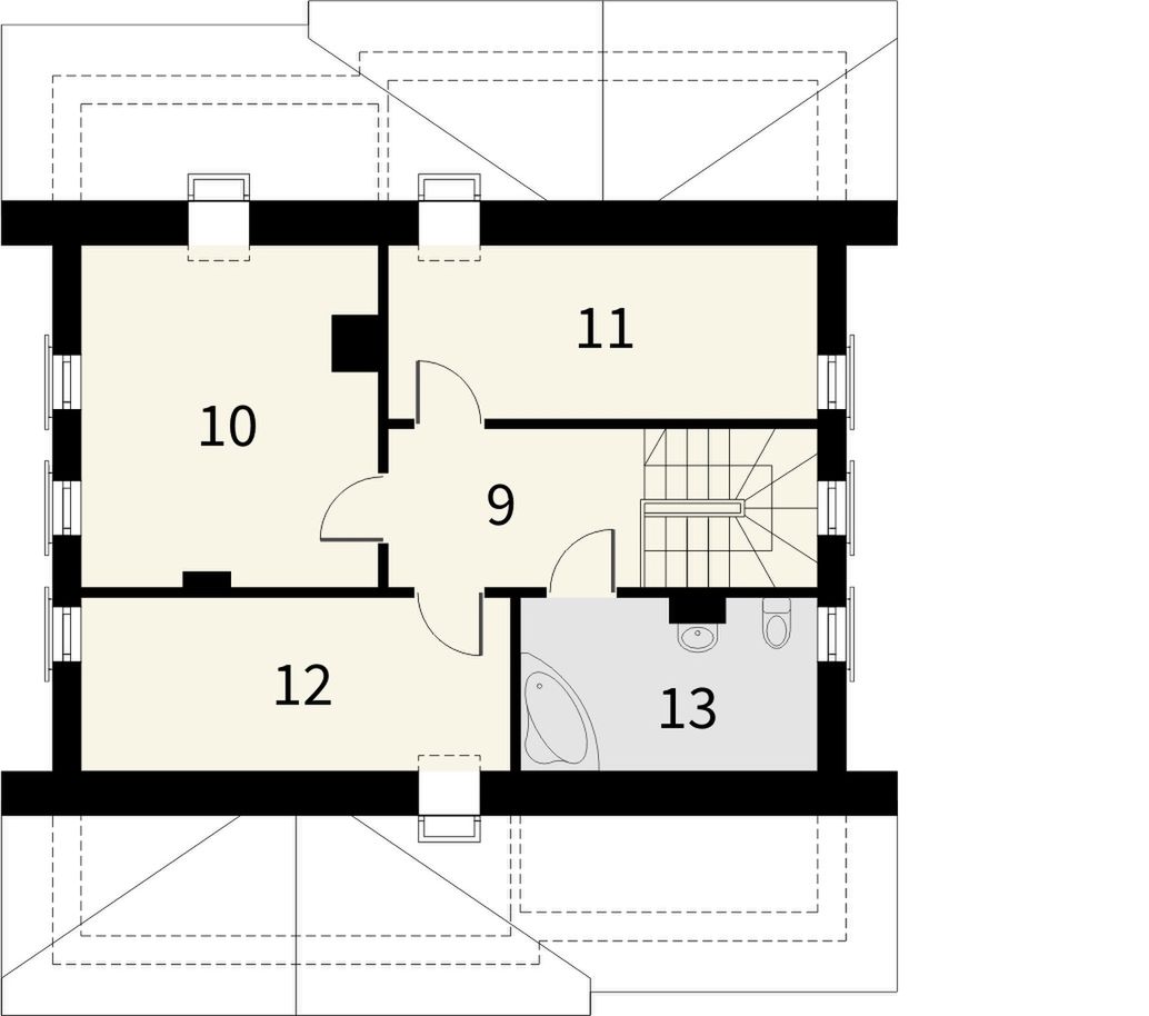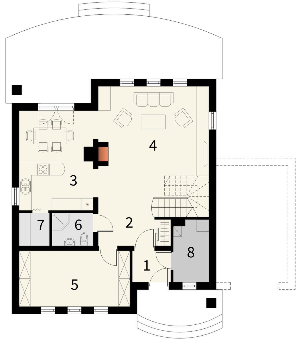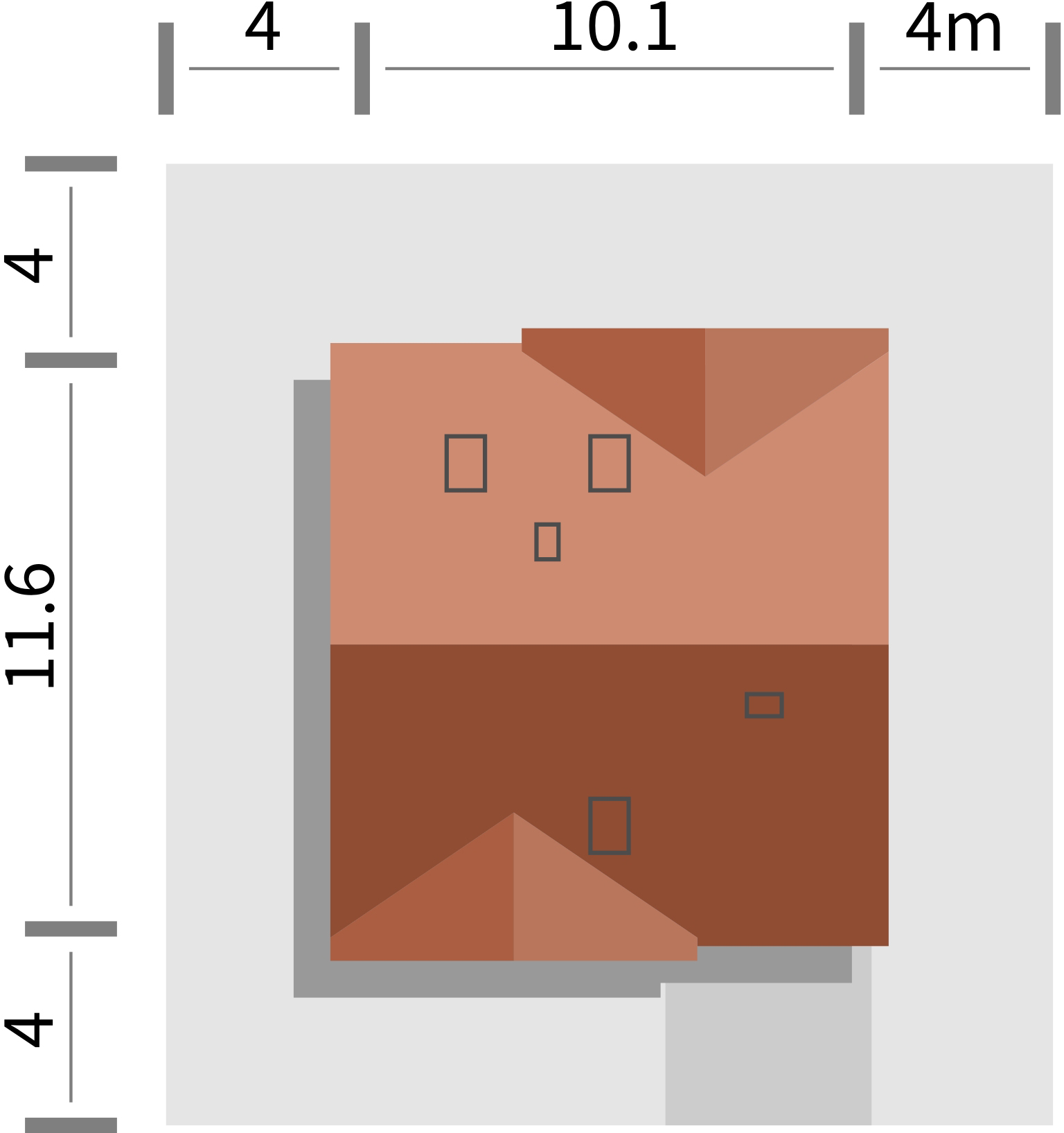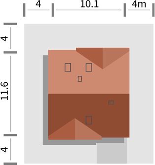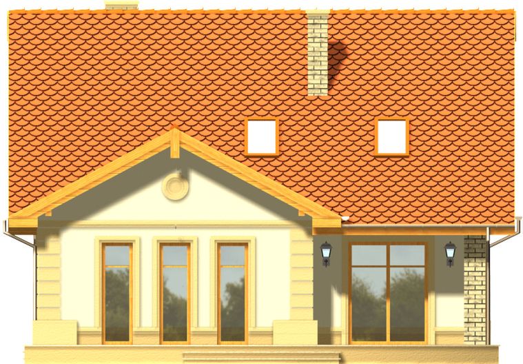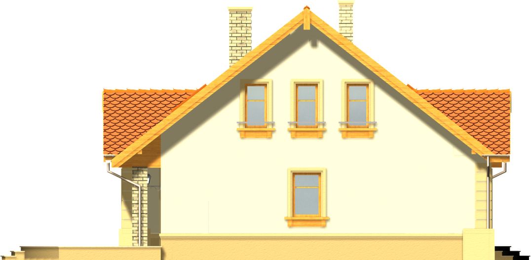 Graficzne opracowanie rzutów poglądowych widocznych na karcie projektu zostało wykonane przez Extradom.pl. Prezentowane przez Extradom.pl wizualizacje wykonane zostały przez autora projektu i należy poczytywać je jedynie za przykład i propozycję wykończenia, wizję architektoniczną autora projektu. Ostateczne wykończenie budynku może nastąpić na wiele sposobów. Szczegółowe rozwiązania zastosowane w oferowanej dokumentacji - w tym również ilość, lokalizacje i wygląd okien, drzwi, kominów - mogą w niewielkim stopniu różnić się od prezentowanej wizualizacji budynku.