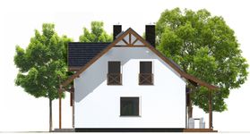 Graficzne opracowanie rzutów poglądowych widocznych na karcie projektu zostało wykonane przez Extradom.pl. Prezentowane przez Extradom.pl wizualizacje wykonane zostały przez autora projektu i należy poczytywać je jedynie za przykład i propozycję wykończenia, wizję architektoniczną autora projektu. Ostateczne wykończenie budynku może nastąpić na wiele sposobów. Szczegółowe rozwiązania zastosowane w oferowanej dokumentacji - w tym również ilość, lokalizacje i wygląd okien, drzwi, kominów - mogą w niewielkim stopniu różnić się od prezentowanej wizualizacji budynku.