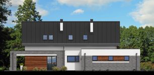 Graficzne opracowanie rzutów poglądowych widocznych na karcie projektu zostało wykonane przez Extradom.pl. Prezentowane przez Extradom.pl wizualizacje wykonane zostały przez autora projektu i należy poczytywać je jedynie za przykład i propozycję wykończenia, wizję architektoniczną autora projektu. Ostateczne wykończenie budynku może nastąpić na wiele sposobów. Szczegółowe rozwiązania zastosowane w oferowanej dokumentacji - w tym również ilość, lokalizacje i wygląd okien, drzwi, kominów - mogą w niewielkim stopniu różnić się od prezentowanej wizualizacji budynku.