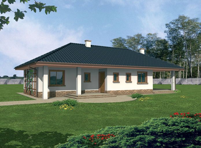 Nasza działka jest długa i wąska. Taki też musieliśmy wybrać projekt domu. Fiona WRY1017 w odbiciu lustrzanym najlepiej wpasował się w nasze wymagania. Chcieliśmy też, aby był to dom parterowy o mniej więcej podobnym układzie pomieszczeń.Jedynie piec gazowy pasował do tego projektu domu, więc taki też założyliśmy. Mamy odpowiednio ocieplony dom i okna dobrej jakości, więc koszty ogrzewania domu są naprawdę niewielkie. W najzimniejszym miesiącu tego roku zapłaciliśmy nie więcej jak 350zł.Układ pomieszczeń w projekcie to prawdziwa rewelacja. Świetnie została rozdzielona część dzienna od sypialnianej. W naszym przypadku ta dzienna jest intensywnie używana. Dla czterech osób, które lubią spędzać czas razem, projekt domu Fiona WRY1017 to trafny wybór. Mimo, że dach jest dosyć wysunięty za bryłę domu, to doświetlenie wnętrza jest bardzo dobre. Dwa okna w kuchni to świetny pomysł. Okno od tarasu zapewnia światło w południe (a także umożliwia podawanie potraw na taras podczas przyjęć), a drugie- wschodnie pozwala nawet wcześnie rano swobodnie operować w kuchni. Duże dwuczęściowe okna wyjściowe na taras zapewnia jasność salonu. Komunikacja między salonem, kuchnią a tarasem jest także plusem tego projektu - łatwo można się przemieszczać pomiędzy tymi miejscami nawet przy większej liczbie gości. Sam taras jest trochę mniejszy - kończy się równo z dachem. Ale to, że jest w całości zadaszony jest wielkim plusem - mogłem go zrobić w drewnie, co wygląda znacznie lepiej od kostkowanego, a z elewacją domu efektownie.Aby jak najlepiej dostosować projekt domu do naszych potrzeb zdecydowaliśmy się na kilka ważnych zmian. Wcześniej mieszkałem w domu z kilkoma niedoskonałościami, więc wiedziałem już, co poprawiać. Zrezygnowaliśmy z garderoby na rzecz drugiej łazienki - uważamy, że świetnie sprawdza się ona jako ta dla gości, a poza tym, przy czterech osobach w domu wydaje się ona niezbędna. Zlikwidowaliśmy także spiżarnię - większe stały się kuchnia i wąski wcześniej wiatrołap. W ogóle nie odczuwamy braku spiżarni w kuchni powstała cała zabudowana ściana i w zupełności wystarcza nam miejsca na różne rzeczy. Wiatrołap stał się wygodniejszy, uwzględniłem w nim również miejsce na wejście na górę, gdybyśmy czasem rozbudowali dom. Łazienka uwzględniona w projekcie stała się trochę mniejsza, aby znaleźć miejsce na szafy wnękowe w sypianiach, które mają zastąpić garderobę. Ściany między salonem a kuchnią także nie ma. Powstał tam barek, który jednocześnie zasłania trochę rozgardiasz kuchenny i stanowi dodatkową powierzchnię użytkową. Do barku dostawiony jest stół, przy którym dzieje się naprawdę wiele. Dzieciaki odrabiają tam lekcje, jemy wspólne śniadania itd. Zależało nam na otwartej przestrzeni kuchni i salonu, znacznie ułatwia to komunikację z gośćmi, gdy co chwilę trzeba zaglądać do kuchni.Projekt domu parterowego Fiona WRY1017 to bardzo ciekawy projekt. Polecam jednak zmiany, które zastosowałem. Z całości jednak jestem bardzo zadowolony i nic więcej bym nie zmieniał. Pozdrawiam.