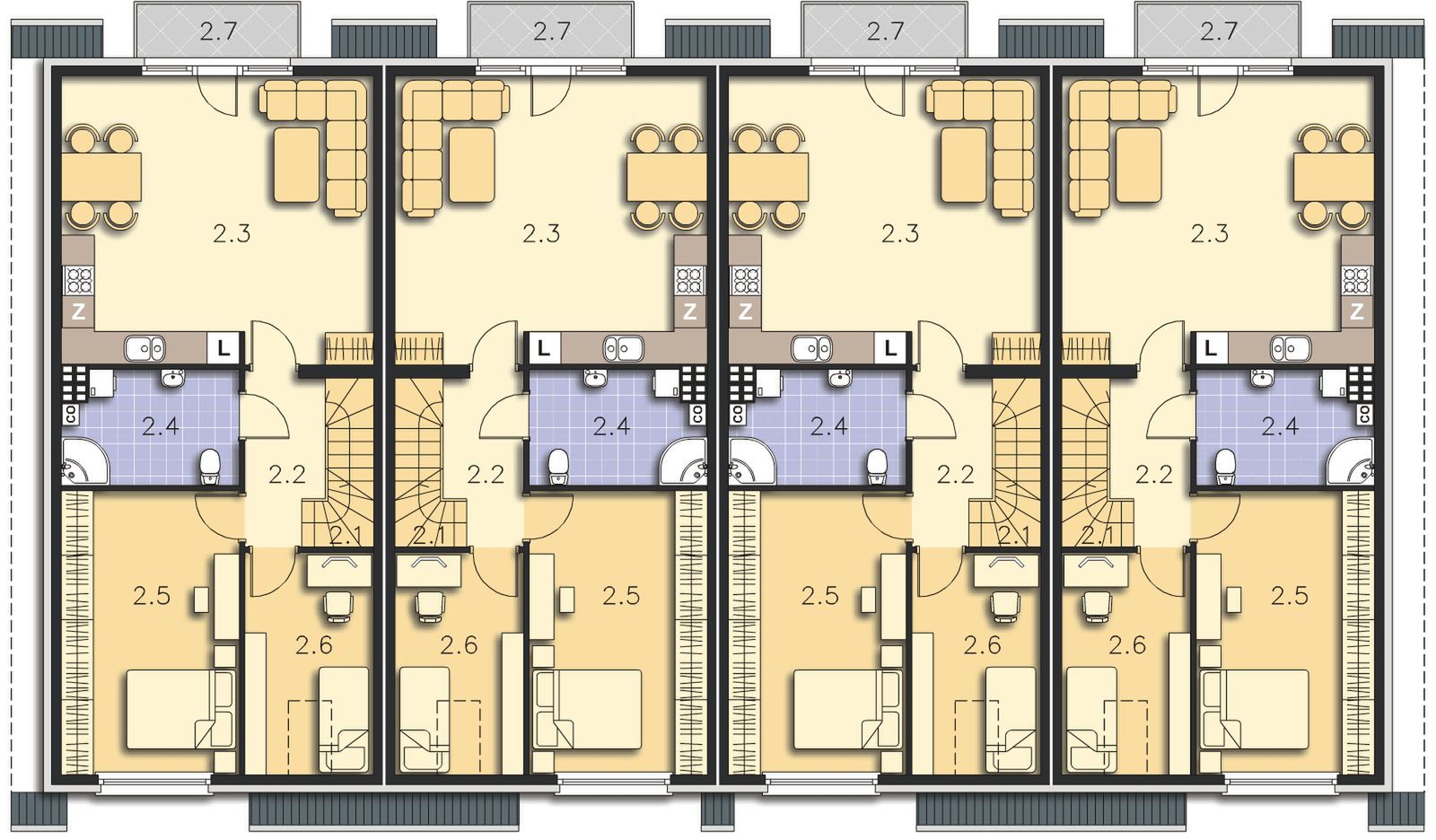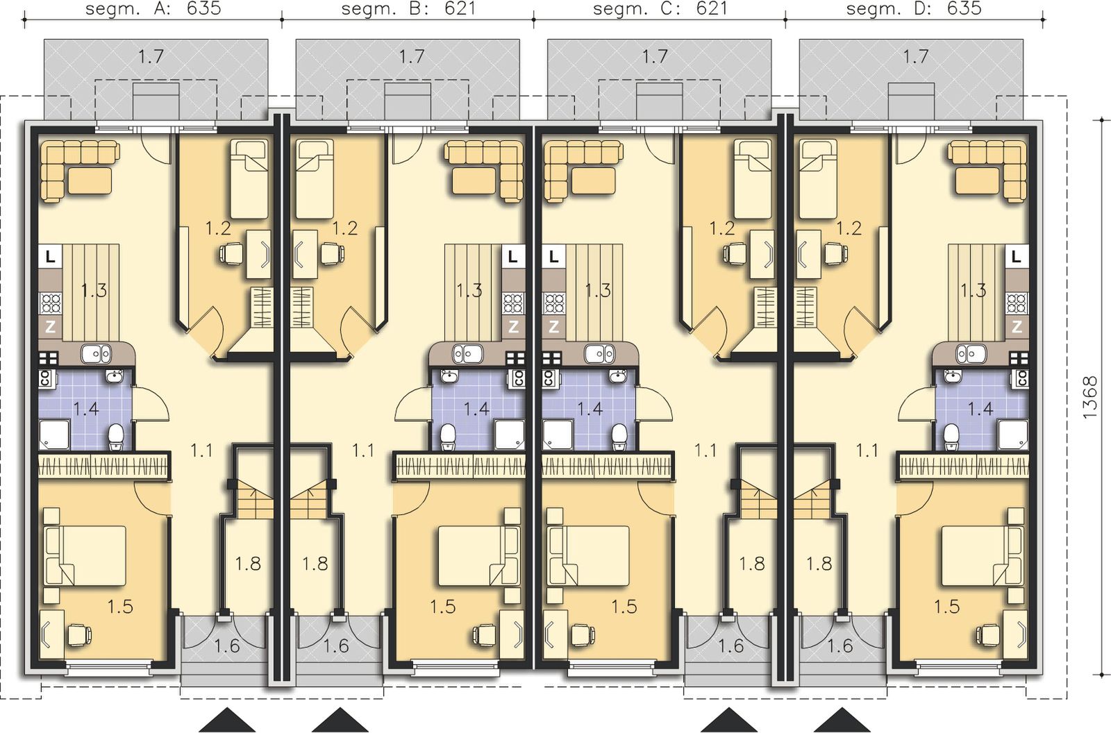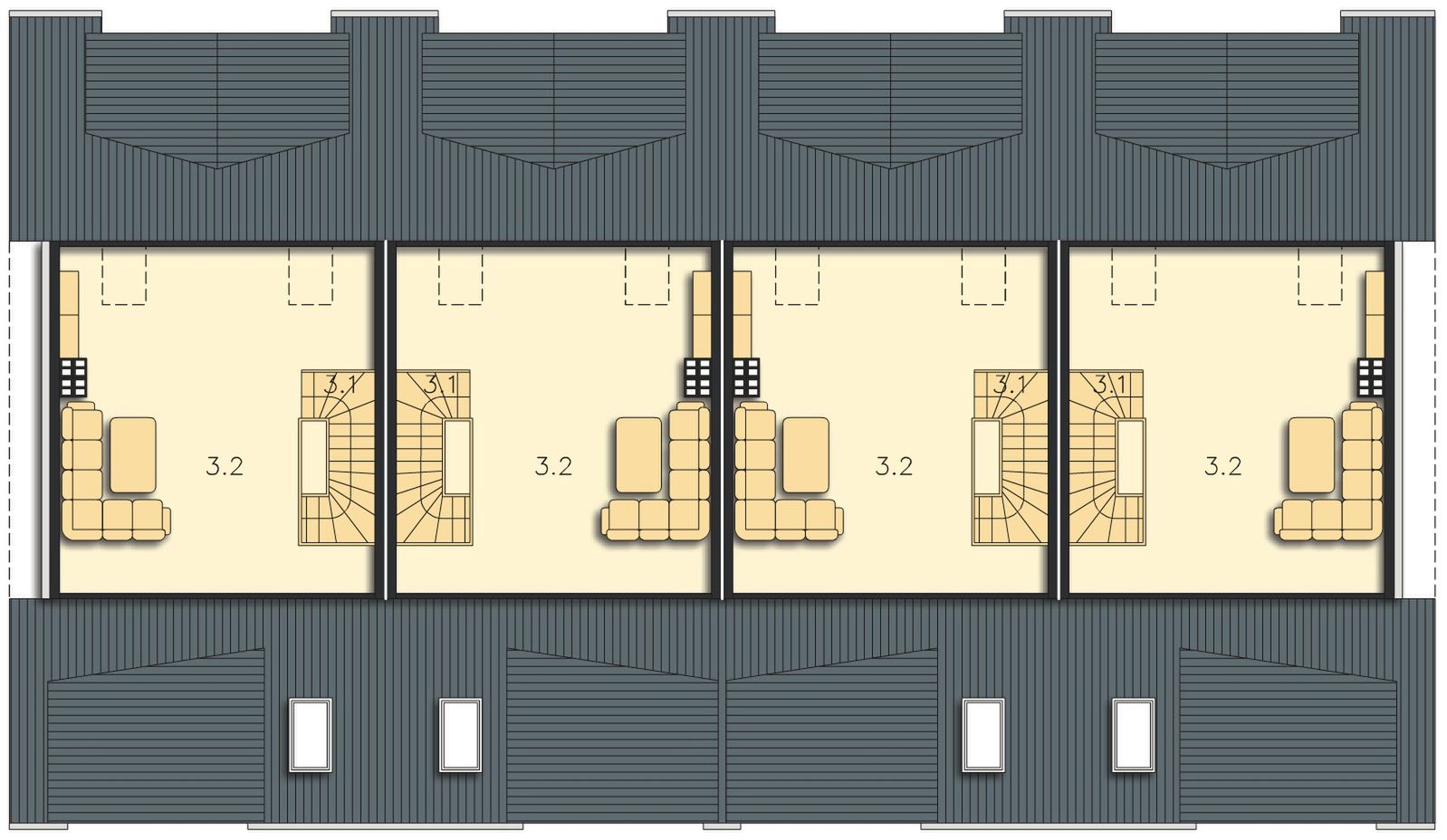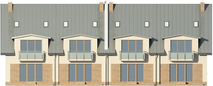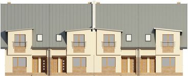 Graficzne opracowanie rzutów poglądowych widocznych na karcie projektu zostało wykonane przez Extradom.pl. Prezentowane przez Extradom.pl wizualizacje wykonane zostały przez autora projektu i należy poczytywać je jedynie za przykład i propozycję wykończenia, wizję architektoniczną autora projektu. Ostateczne wykończenie budynku może nastąpić na wiele sposobów. Szczegółowe rozwiązania zastosowane w oferowanej dokumentacji - w tym również ilość, lokalizacje i wygląd okien, drzwi, kominów - mogą w niewielkim stopniu różnić się od prezentowanej wizualizacji budynku.