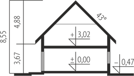 Graficzne opracowanie rzutów poglądowych widocznych na karcie projektu zostało wykonane przez Extradom.pl. Prezentowane przez Extradom.pl wizualizacje wykonane zostały przez autora projektu i należy poczytywać je jedynie za przykład i propozycję wykończenia, wizję architektoniczną autora projektu. Ostateczne wykończenie budynku może nastąpić na wiele sposobów. Szczegółowe rozwiązania zastosowane w oferowanej dokumentacji - w tym również ilość, lokalizacje i wygląd okien, drzwi, kominów - mogą w niewielkim stopniu różnić się od prezentowanej wizualizacji budynku.