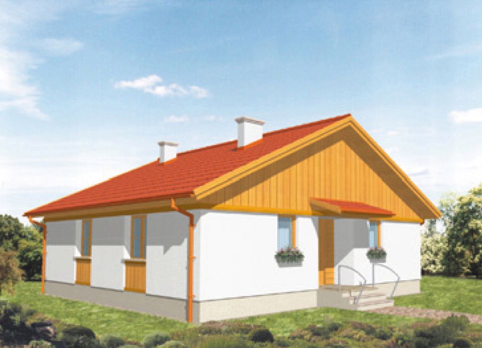 Graficzne opracowanie rzutów poglądowych widocznych na karcie projektu zostało wykonane przez Extradom.pl. Prezentowane przez Extradom.pl wizualizacje wykonane zostały przez autora projektu i należy poczytywać je jedynie za przykład i propozycję wykończenia, wizję architektoniczną autora projektu. Ostateczne wykończenie budynku może nastąpić na wiele sposobów. Szczegółowe rozwiązania zastosowane w oferowanej dokumentacji - w tym również ilość, lokalizacje i wygląd okien, drzwi, kominów - mogą w niewielkim stopniu różnić się od prezentowanej wizualizacji budynku.
