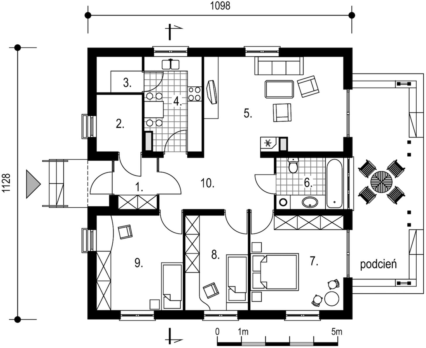 Ściany zewnętrzne dwuwarstwowe: cegła SILKA + wełna mineralna + tynk. Ściany wewnętrzne: cegła SILKA i/lub płyty na ruszcie stalowym, wygłuszone wełną mineralną. Strop: drewniany. Więźba dachowa: tradycyjna drewniana. Poszycie dachu: dachówka cementowa. Stolarka: drewniana lub PCV. Instalacja centralnego ogrzewania: kocioł dwufunkcyjny + grzejniki.