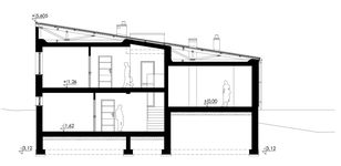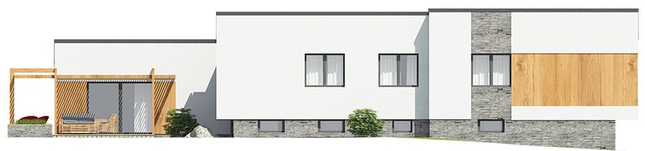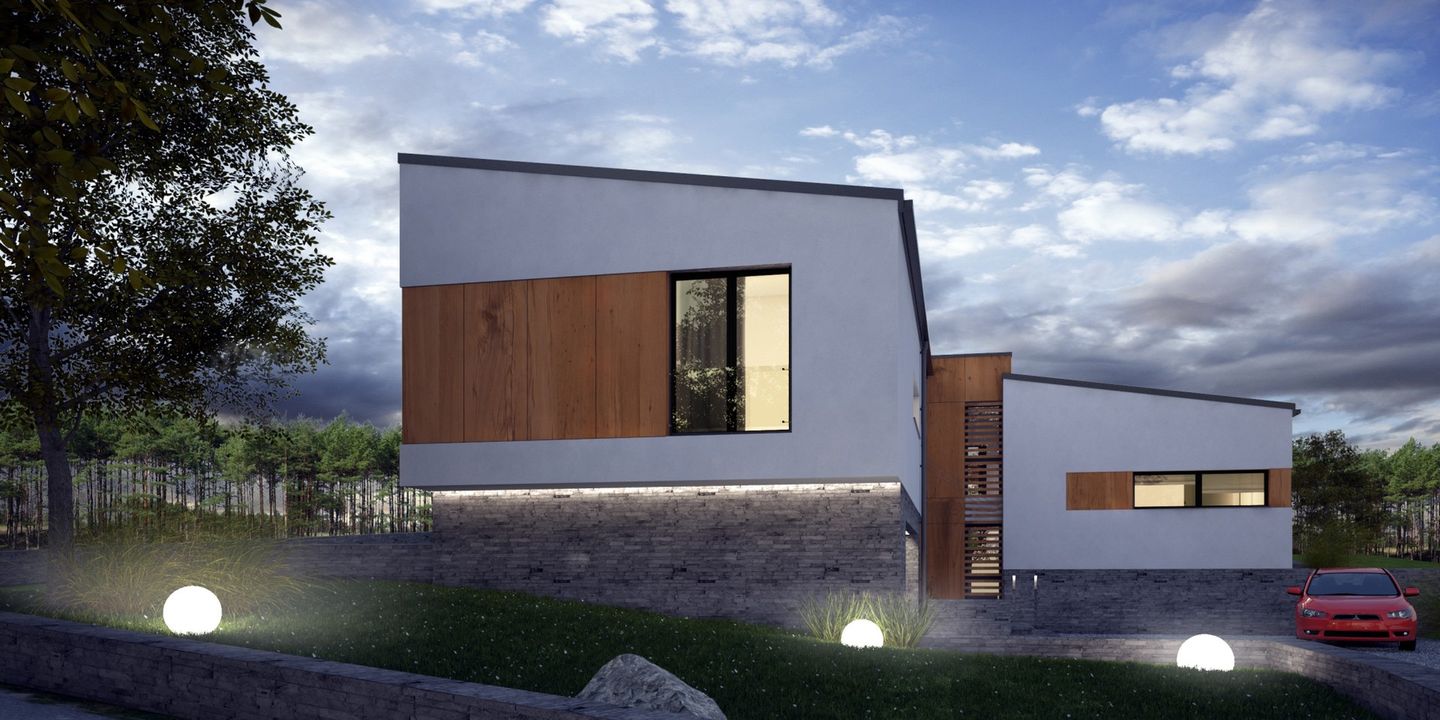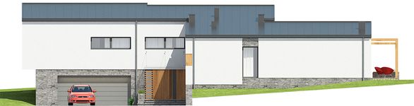 Graficzne opracowanie rzutów poglądowych widocznych na karcie projektu zostało wykonane przez Extradom.pl. Prezentowane przez Extradom.pl wizualizacje wykonane zostały przez autora projektu i należy poczytywać je jedynie za przykład i propozycję wykończenia, wizję architektoniczną autora projektu. Ostateczne wykończenie budynku może nastąpić na wiele sposobów. Szczegółowe rozwiązania zastosowane w oferowanej dokumentacji - w tym również ilość, lokalizacje i wygląd okien, drzwi, kominów - mogą w niewielkim stopniu różnić się od prezentowanej wizualizacji budynku.