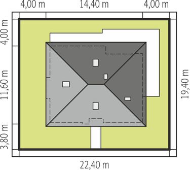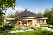 Graficzne opracowanie rzutów poglądowych widocznych na karcie projektu zostało wykonane przez Extradom.pl. Prezentowane przez Extradom.pl wizualizacje wykonane zostały przez autora projektu i należy poczytywać je jedynie za przykład i propozycję wykończenia, wizję architektoniczną autora projektu. Ostateczne wykończenie budynku może nastąpić na wiele sposobów. Szczegółowe rozwiązania zastosowane w oferowanej dokumentacji - w tym również ilość, lokalizacje i wygląd okien, drzwi, kominów - mogą w niewielkim stopniu różnić się od prezentowanej wizualizacji budynku.