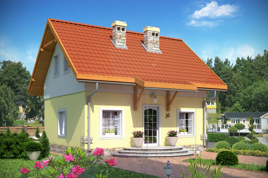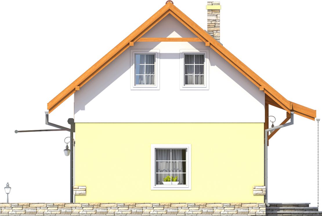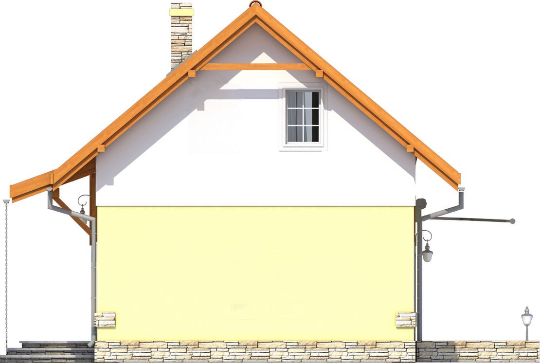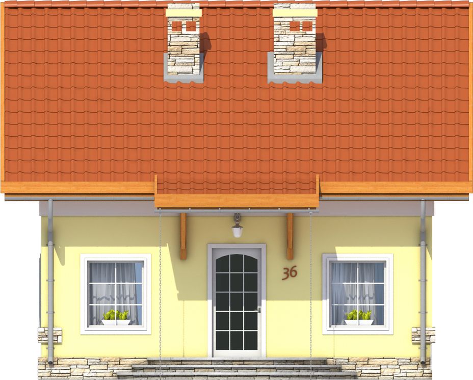 Graficzne opracowanie rzutów poglądowych widocznych na karcie projektu zostało wykonane przez Extradom.pl. Prezentowane przez Extradom.pl wizualizacje wykonane zostały przez autora projektu i należy poczytywać je jedynie za przykład i propozycję wykończenia, wizję architektoniczną autora projektu. Ostateczne wykończenie budynku może nastąpić na wiele sposobów. Szczegółowe rozwiązania zastosowane w oferowanej dokumentacji - w tym również ilość, lokalizacje i wygląd okien, drzwi, kominów - mogą w niewielkim stopniu różnić się od prezentowanej wizualizacji budynku.
