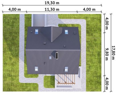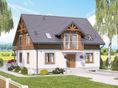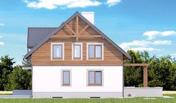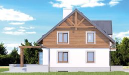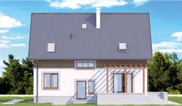 Graficzne opracowanie rzutów poglądowych widocznych na karcie projektu zostało wykonane przez Extradom.pl. Prezentowane przez Extradom.pl wizualizacje wykonane zostały przez autora projektu i należy poczytywać je jedynie za przykład i propozycję wykończenia, wizję architektoniczną autora projektu. Ostateczne wykończenie budynku może nastąpić na wiele sposobów. Szczegółowe rozwiązania zastosowane w oferowanej dokumentacji - w tym również ilość, lokalizacje i wygląd okien, drzwi, kominów - mogą w niewielkim stopniu różnić się od prezentowanej wizualizacji budynku.