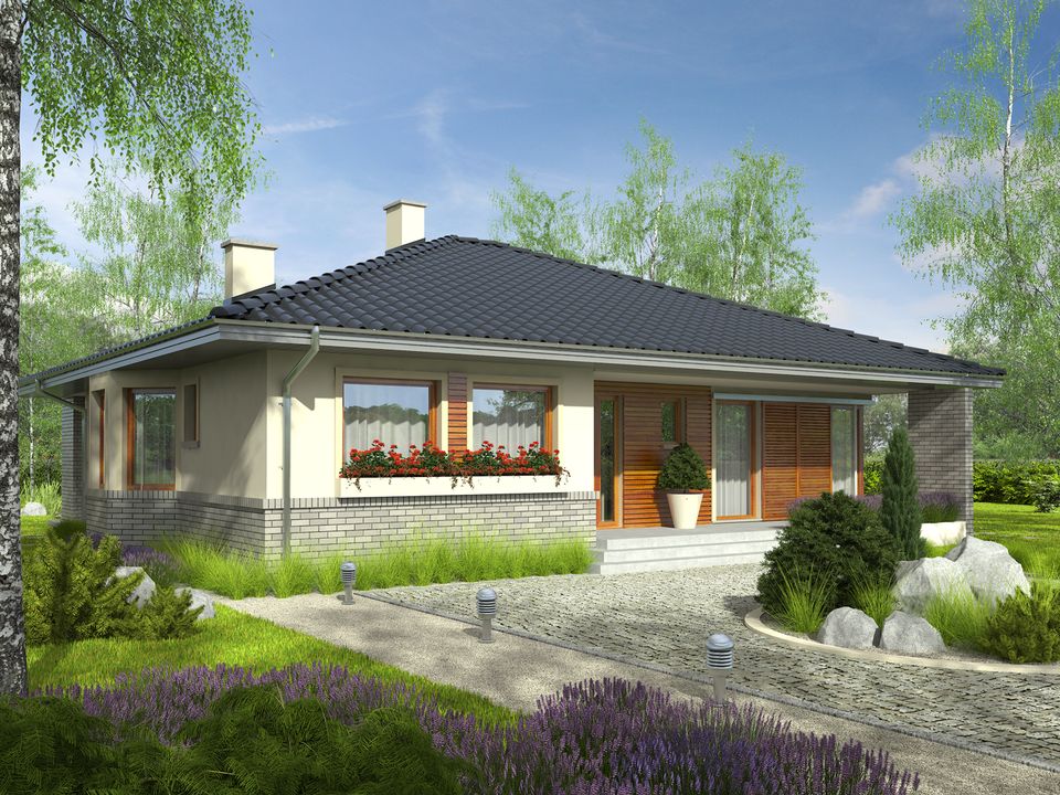 Zdecydowaliśmy się na realizację projektu Flori II WRC1953, ponieważ przewidziany w nim układ pomieszczeń w całości odpowiadał naszym oczekiwaniom. Rozwiązaniem, które szczególnie przypadło nam do gustu jest wyraźny podział domu na ogólnodostępną część dzienną i prywatą strefę nocną. Dodatkowo, bardzo spodobały nam się duże rozmiary przeszkleń we wszystkich pokojach. Wiedzieliśmy, że dzięki nim wnętrze będzie jasne i przestronne.Podczas budowy nie mieliśmy żadnych problemów. Budynek został postawiony przy użyciu ceramicznych pustaków, a dach pokryliśmy dachówką. Zamiast tradycyjnej więźby, postanowiliśmy zastosować konstrukcję wiązarową, co pozwoliło nam na pewne oszczędności. Innym odstępstwem od zaleceń było wykonanie elementów łączenia okien narożnych w sypialniach, gdyż zamiast gotowych słupków, fachowcy postanowili je wymurować, jednakże nie wynikało to z błędu w dokumentacji. Wszystko odbyło się sprawnie i naprawdę szybko. Od pierwszego „wbicia łopaty” do wprowadzenia się do nowego domu minęło zaledwie 5 miesięcy bez 9 dni. Co prawda, jeszcze nie wszystko było skończone, ale nie przeszkadzało nam to w wygodnym mieszkaniu, a prace wykończeniowe wykonywaliśmy w międzyczasie. Cała inwestycja, łącznie z wykończeniami trwała od kwietnia do grudnia tego samego roku.Trudno mi odnieść się do poprawności kosztorysu projektu Flori II WRC1953, ponieważ nasza realizacja zlecona była firmom i koszty związane z budową rozłożone były na kilka etapów. Dodatkowo, cenę domu dosyć mocno powiększyły zastosowane przez nas przeszklenia. Zdecydowaliśmy się na wstawienie trzyszybowych okien o 5-komorowych profilach, które łącznie z zewnętrznymi roletami wyniosły ok. 27 tys.zł. Kolejnym czynnikiem mającym wpływ na naszą inwestycję były wprowadzone zmiany, w wyniku których metraż domu zwiększył się do 140 m². W naszym przypadku bryła ma formę prostokąta, ponieważ do salonu przyłączyliśmy wnękę na taras, a front domu wyrównaliśmy do zewnętrznej ściany kuchni.Izolację budynku tworzy 20 cm warstwa styropianu, zaś poddasze ociepliliśmy wełną mineralną. Zdecydowaliśmy się na zastosowanie systemu ogrzewania podłogowego, a w kotłowni mamy piec gazowy, który służy nam zarówno do ogrzania domu. jak i wody użytkowej. Miesięczne rachunki za gaz to koszt ok. 500 zł w okresie największych mrozów. Myślę, że to stosunkowo korzystna kwota biorąc pod uwagę, iż po wprowadzonych modyfikacjach kubatura budynku jest dosyć spora.Jesteśmy zadowoleni z wyboru projektu domu parterowego projektu Flori II WRC1953. Architekt doskonale zaplanował rozmieszczenie wnętrza, dlatego nie czuliśmy potrzeby zastosowania zmian w jego układzie. Jedyną, kosmetyczną poprawką było przesunięcie kominka bliżej środkowej części ściany w salonie. W nowym domu mieszka się nam bardzo komfortowo, a projekt śmiało mogę polecić innym Inwestorom. Pozdrawiam.