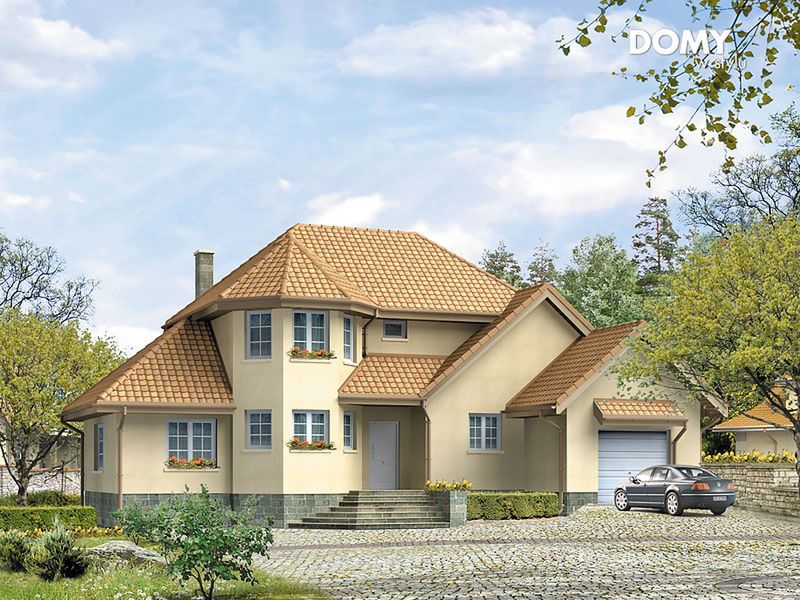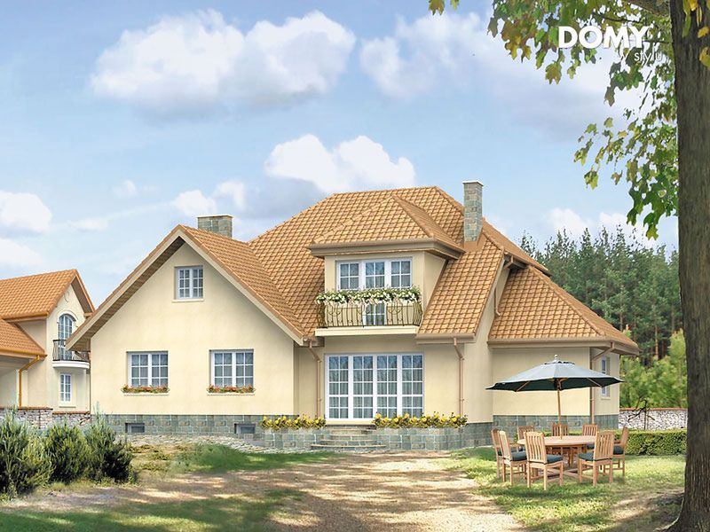 Graficzne opracowanie rzutów poglądowych widocznych na karcie projektu zostało wykonane przez Extradom.pl. Prezentowane przez Extradom.pl wizualizacje wykonane zostały przez autora projektu i należy poczytywać je jedynie za przykład i propozycję wykończenia, wizję architektoniczną autora projektu. Ostateczne wykończenie budynku może nastąpić na wiele sposobów. Szczegółowe rozwiązania zastosowane w oferowanej dokumentacji - w tym również ilość, lokalizacje i wygląd okien, drzwi, kominów - mogą w niewielkim stopniu różnić się od prezentowanej wizualizacji budynku.