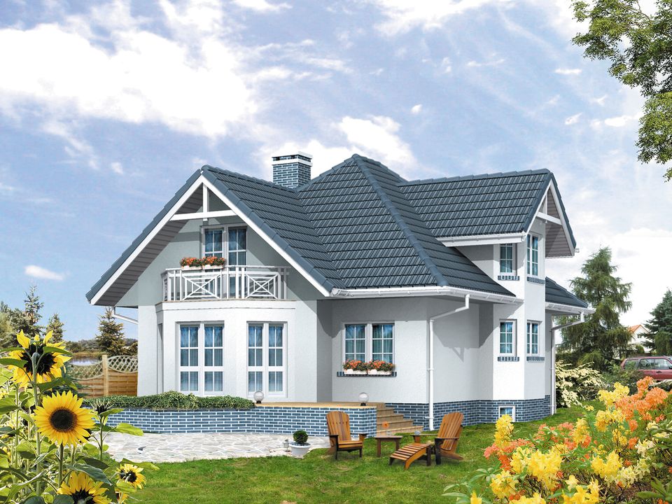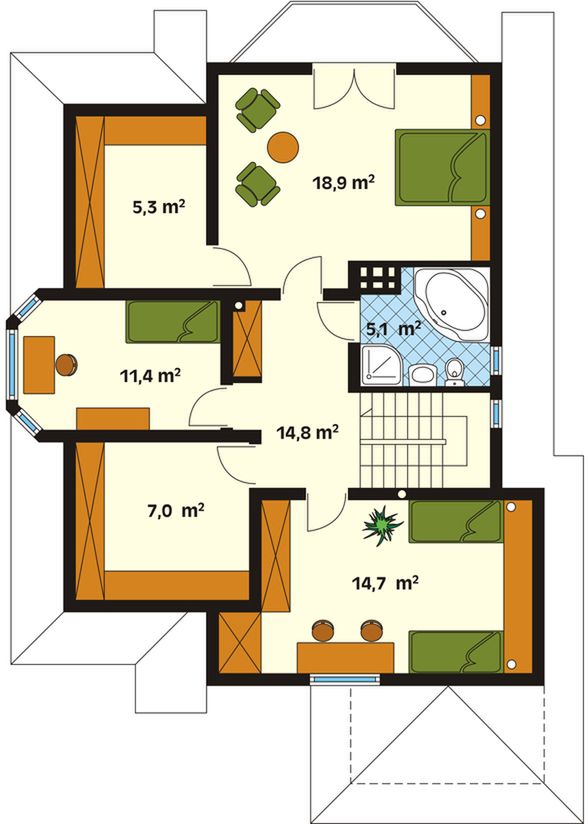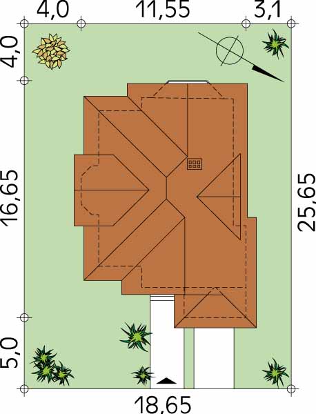 Graficzne opracowanie rzutów poglądowych widocznych na karcie projektu zostało wykonane przez Extradom.pl. Prezentowane przez Extradom.pl wizualizacje wykonane zostały przez autora projektu i należy poczytywać je jedynie za przykład i propozycję wykończenia, wizję architektoniczną autora projektu. Ostateczne wykończenie budynku może nastąpić na wiele sposobów. Szczegółowe rozwiązania zastosowane w oferowanej dokumentacji - w tym również ilość, lokalizacje i wygląd okien, drzwi, kominów - mogą w niewielkim stopniu różnić się od prezentowanej wizualizacji budynku.