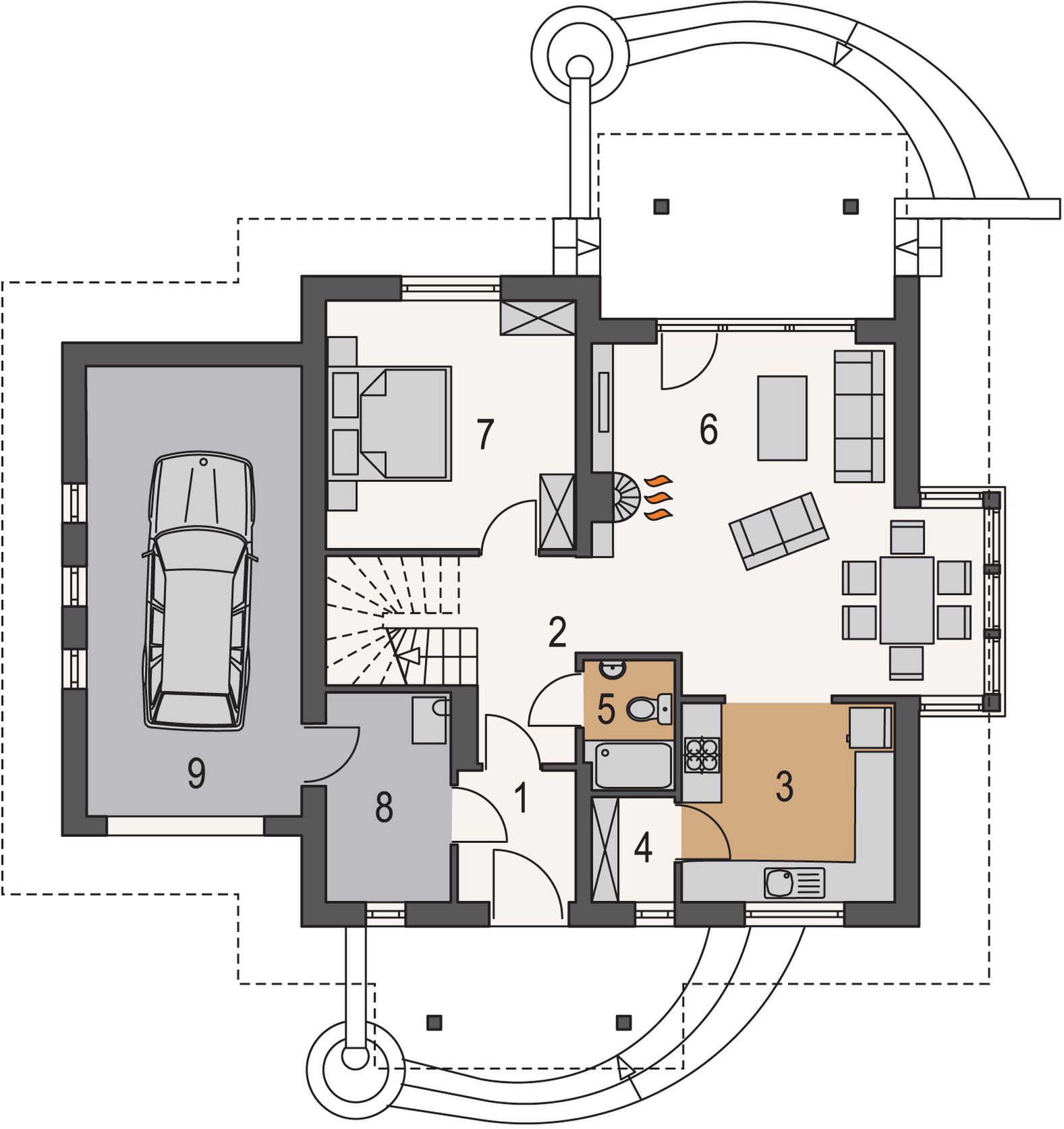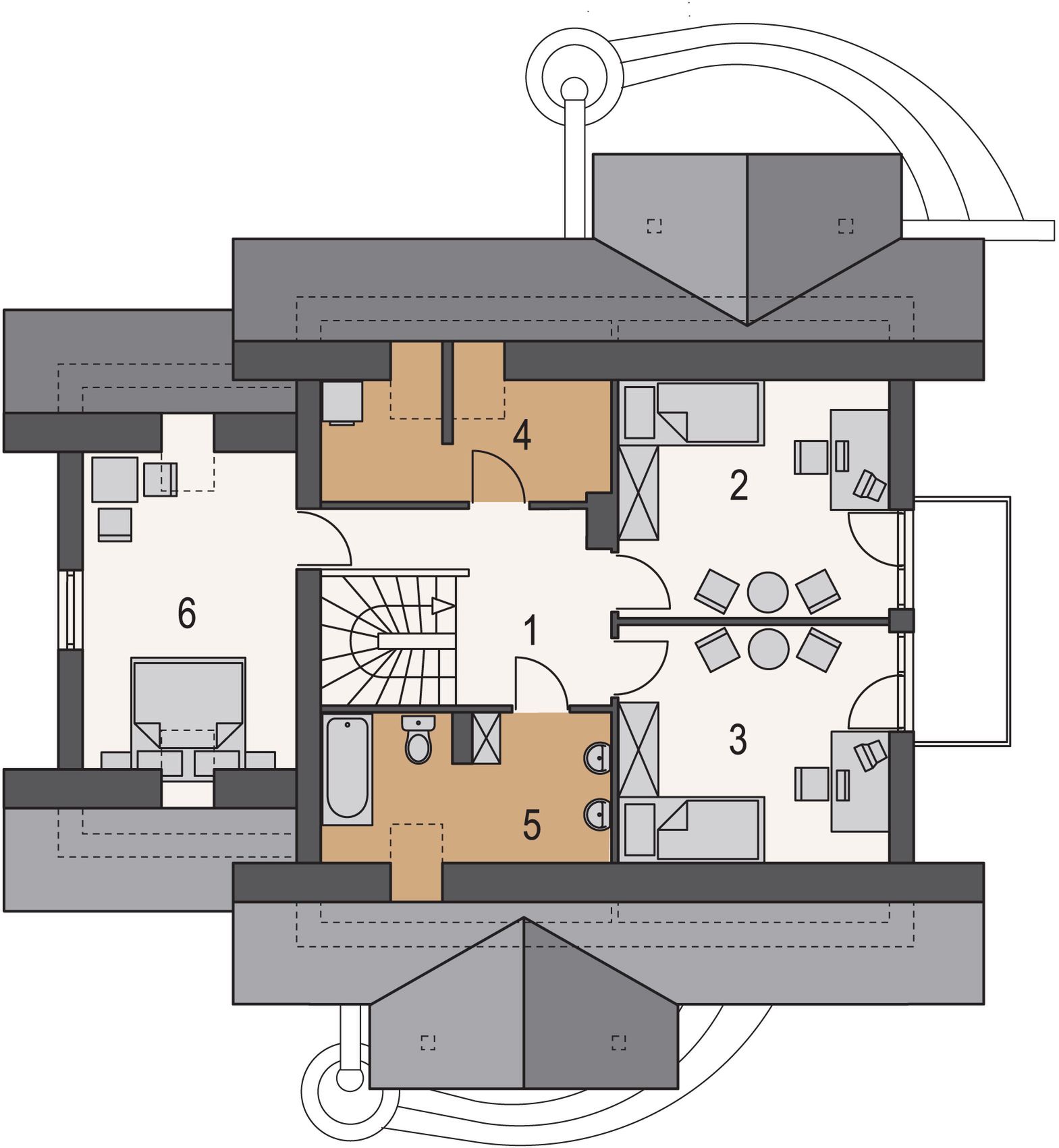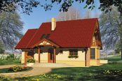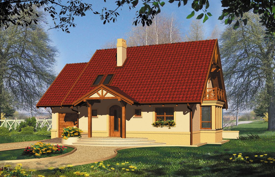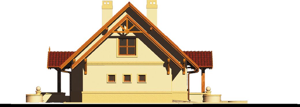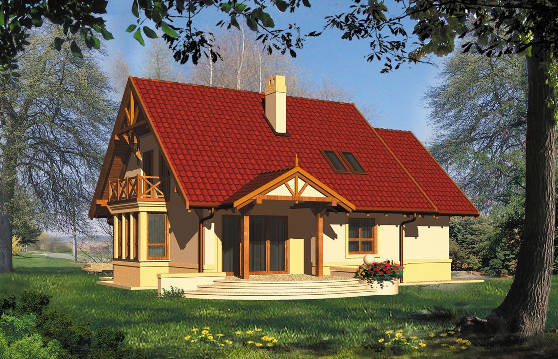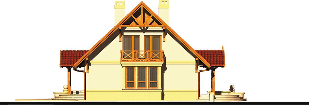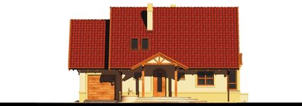 Graficzne opracowanie rzutów poglądowych widocznych na karcie projektu zostało wykonane przez Extradom.pl. Prezentowane przez Extradom.pl wizualizacje wykonane zostały przez autora projektu i należy poczytywać je jedynie za przykład i propozycję wykończenia, wizję architektoniczną autora projektu. Ostateczne wykończenie budynku może nastąpić na wiele sposobów. Szczegółowe rozwiązania zastosowane w oferowanej dokumentacji - w tym również ilość, lokalizacje i wygląd okien, drzwi, kominów - mogą w niewielkim stopniu różnić się od prezentowanej wizualizacji budynku.