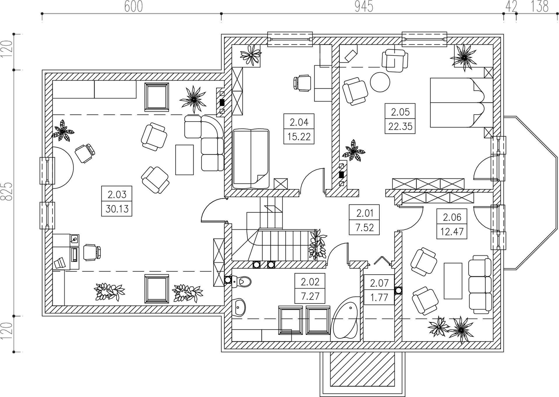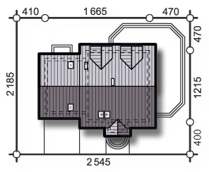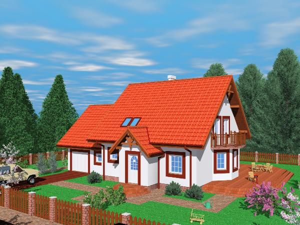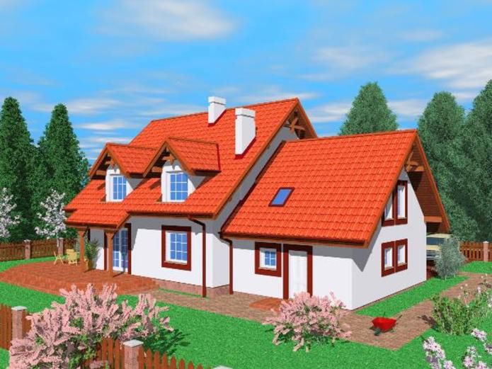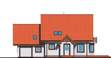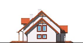 Graficzne opracowanie rzutów poglądowych widocznych na karcie projektu zostało wykonane przez Extradom.pl. Prezentowane przez Extradom.pl wizualizacje wykonane zostały przez autora projektu i należy poczytywać je jedynie za przykład i propozycję wykończenia, wizję architektoniczną autora projektu. Ostateczne wykończenie budynku może nastąpić na wiele sposobów. Szczegółowe rozwiązania zastosowane w oferowanej dokumentacji - w tym również ilość, lokalizacje i wygląd okien, drzwi, kominów - mogą w niewielkim stopniu różnić się od prezentowanej wizualizacji budynku.