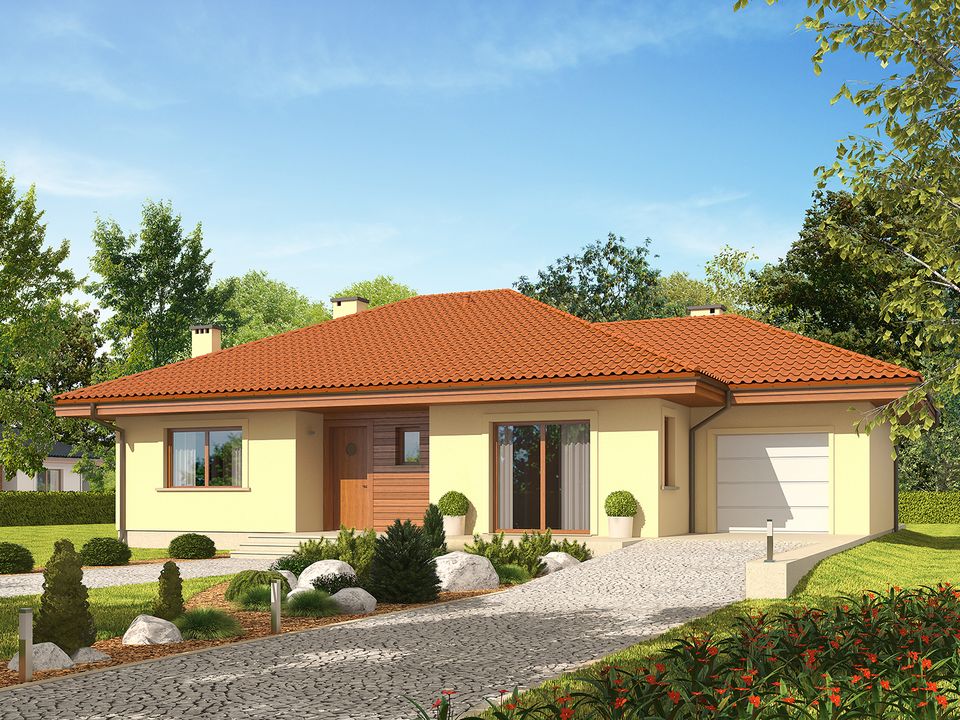 Najważniejszym kryterium przy wyborze projektu było dla nas to, aby budynek był parterowy. Jedna kondygnacja gwarantuje łatwą komunikację między wszystkimi pomieszczeniami, a ponadto nie zależało nam na dużym metrażu. Oprócz tego, ważnym dla nas elementem był garaż uwzględniony w bryle domu. Wszystkie te warunki spełniał projekt Franczi II G1 Economic (wersja B) WRC2066, dlatego też zdecydowaliśmy się na jego realizację. W pierwszym roku od rozpoczęcia budowy zamknęliśmy stan surowy. W drugim natomiast wykonaliśmy wszelkie instalacje, szambo oraz większość prac wykończeniowych. Na chwilę obecną zostało nam jeszcze kilka rzeczy do zrobienia, ale nie mamy potrzeby, aby się z tym śpieszyć. Strop zrobiliśmy systemem Teriva, a ściany zostały wymurowane przy użyciu bloczków Suporex. Zarówno do wylania stropu jak i wykonania wylewek zastosowaliśmy beton klasy B20. Zamiast sugerowanej przez architekta dachówki ceramicznej, dach pokryliśmy blachodachówką. Bryłę z zewnątrz pokryliśmy styropianem o grubości 15 cm. Do izolacji stropu i posadzek użyliśmy 10 cm warstwę tego materiału. Na powierzchni salonu, kuchni, łazienek i korytarzy zainstalowaliśmy system ogrzewania podłogowego, zaś w pokojach mamy tradycyjne grzejniki. Koszty realizacji mogę uznać za dużą zaletę projektu Franczi II G1 Economic (wersja B) WRC2066. Przy zastosowanych rozwiązaniach było one stosunkowo niskie. Jestem z tego zadowolona tym bardziej, iż nie mieliśmy czasu aby samodzielnie wykonywać prac budowlanych i do wszystkiego zatrudnialiśmy odpowiednich fachowców, a jak wiadomo koszty robocizny nie należą do najtańszych. Do oryginalnego projektu wprowadziliśmy kilka zmian. Jedną z nich była likwidacja małego okna w sypialni znajdującej się od frontu domu. Zrezygnowaliśmy również z bezpośredniego wyjścia z garażu na zewnątrz. Dzięki temu stal się on bardziej praktyczny, gdyż na tej ścianie powstało miejsce na powieszenie półek i wstawienie szafki. Wymiary pierwotnej kotłowni sprawdziłyby się przy ogrzewaniu gazowym, jednak do wstawienia pieca na paliwo stałe jest ona trochę za mała. Z tego względu postanowiliśmy powiększyć ją, ujmując nieco powierzchni z pokoju. Ponadto, aby nie wchodzić do niej bezpośrednio z korytarza, wstawiliśmy dodatkowe drzwi tworząc tym samym mały przedsionek. Przyszłym inwestorom projektu domu parterowego Franczi II G1 Economic (wersja B) WRC2066 mogę polecić jeszcze obniżenie poziomu garażu. W naszym przypadku podjazd wyszedł dosyć wysoko i do jego zrobienia musieliśmy użyć sporej ilości piasku. Myślę więc, że warto to przemyśleć. Dobrym pomysłem byłoby również zrobienie garderoby w miejscu małej łazienki, gdyż przy obecnym układzie nieco jej brakuje. Jeśli jednak komuś nie jest ona potrzebna, można rozważyć zrobienie bezpośredniego wejścia do łazienki od strony sypialni. Pozdrawiam.