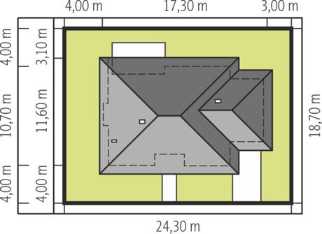 Graficzne opracowanie rzutów poglądowych widocznych na karcie projektu zostało wykonane przez Extradom.pl. Prezentowane przez Extradom.pl wizualizacje wykonane zostały przez autora projektu i należy poczytywać je jedynie za przykład i propozycję wykończenia, wizję architektoniczną autora projektu. Ostateczne wykończenie budynku może nastąpić na wiele sposobów. Szczegółowe rozwiązania zastosowane w oferowanej dokumentacji - w tym również ilość, lokalizacje i wygląd okien, drzwi, kominów - mogą w niewielkim stopniu różnić się od prezentowanej wizualizacji budynku.