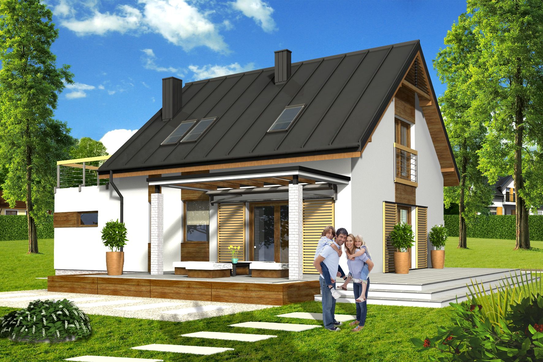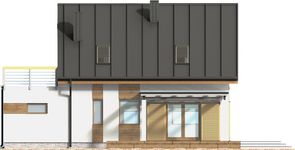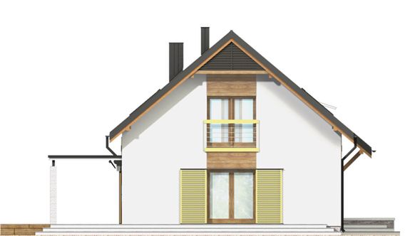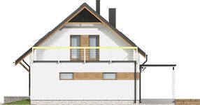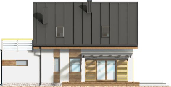 Graficzne opracowanie rzutów poglądowych widocznych na karcie projektu zostało wykonane przez Extradom.pl. Prezentowane przez Extradom.pl wizualizacje wykonane zostały przez autora projektu i należy poczytywać je jedynie za przykład i propozycję wykończenia, wizję architektoniczną autora projektu. Ostateczne wykończenie budynku może nastąpić na wiele sposobów. Szczegółowe rozwiązania zastosowane w oferowanej dokumentacji - w tym również ilość, lokalizacje i wygląd okien, drzwi, kominów - mogą w niewielkim stopniu różnić się od prezentowanej wizualizacji budynku.