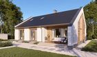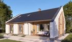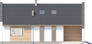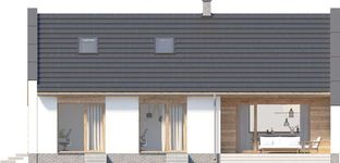 Graficzne opracowanie rzutów poglądowych widocznych na karcie projektu zostało wykonane przez Extradom.pl. Prezentowane przez Extradom.pl wizualizacje wykonane zostały przez autora projektu i należy poczytywać je jedynie za przykład i propozycję wykończenia, wizję architektoniczną autora projektu. Ostateczne wykończenie budynku może nastąpić na wiele sposobów. Szczegółowe rozwiązania zastosowane w oferowanej dokumentacji - w tym również ilość, lokalizacje i wygląd okien, drzwi, kominów - mogą w niewielkim stopniu różnić się od prezentowanej wizualizacji budynku.