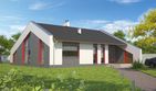 Graficzne opracowanie rzutów poglądowych widocznych na karcie projektu zostało wykonane przez Extradom.pl. Prezentowane przez Extradom.pl wizualizacje wykonane zostały przez autora projektu i należy poczytywać je jedynie za przykład i propozycję wykończenia, wizję architektoniczną autora projektu. Ostateczne wykończenie budynku może nastąpić na wiele sposobów. Szczegółowe rozwiązania zastosowane w oferowanej dokumentacji - w tym również ilość, lokalizacje i wygląd okien, drzwi, kominów - mogą w niewielkim stopniu różnić się od prezentowanej wizualizacji budynku.