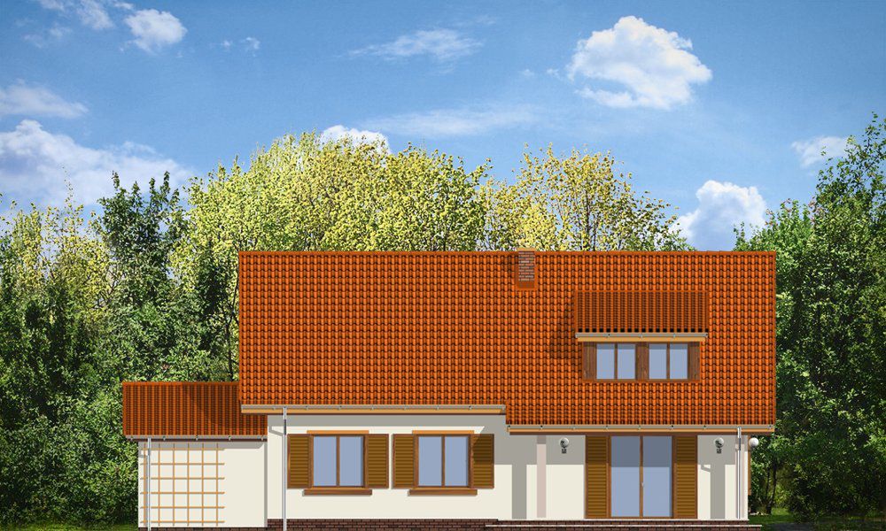 Graficzne opracowanie rzutów poglądowych widocznych na karcie projektu zostało wykonane przez Extradom.pl. Prezentowane przez Extradom.pl wizualizacje wykonane zostały przez autora projektu i należy poczytywać je jedynie za przykład i propozycję wykończenia, wizję architektoniczną autora projektu. Ostateczne wykończenie budynku może nastąpić na wiele sposobów. Szczegółowe rozwiązania zastosowane w oferowanej dokumentacji - w tym również ilość, lokalizacje i wygląd okien, drzwi, kominów - mogą w niewielkim stopniu różnić się od prezentowanej wizualizacji budynku.