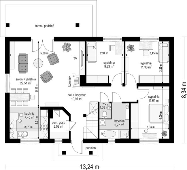 PROJEKT Z BUDOWĄ Istnieje możliwość zaadaptowania tego projektu do technologii prefabrykowanej/modułowej i budowy nawet w 6 miesięcy ze stałym kosztem budowy