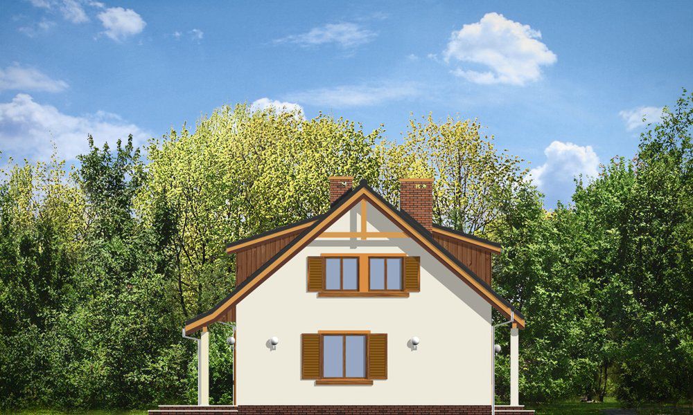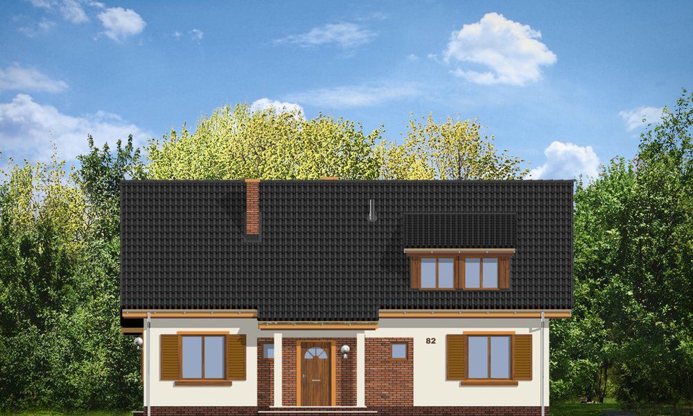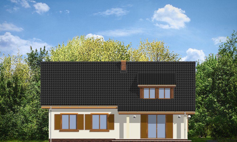 Graficzne opracowanie rzutów poglądowych widocznych na karcie projektu zostało wykonane przez Extradom.pl. Prezentowane przez Extradom.pl wizualizacje wykonane zostały przez autora projektu i należy poczytywać je jedynie za przykład i propozycję wykończenia, wizję architektoniczną autora projektu. Ostateczne wykończenie budynku może nastąpić na wiele sposobów. Szczegółowe rozwiązania zastosowane w oferowanej dokumentacji - w tym również ilość, lokalizacje i wygląd okien, drzwi, kominów - mogą w niewielkim stopniu różnić się od prezentowanej wizualizacji budynku.