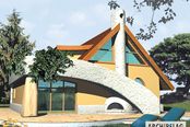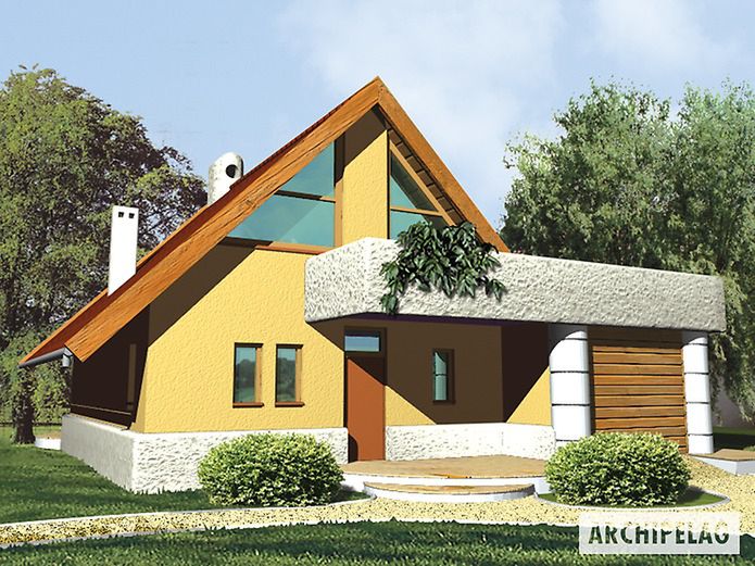 Graficzne opracowanie rzutów poglądowych widocznych na karcie projektu zostało wykonane przez Extradom.pl. Prezentowane przez Extradom.pl wizualizacje wykonane zostały przez autora projektu i należy poczytywać je jedynie za przykład i propozycję wykończenia, wizję architektoniczną autora projektu. Ostateczne wykończenie budynku może nastąpić na wiele sposobów. Szczegółowe rozwiązania zastosowane w oferowanej dokumentacji - w tym również ilość, lokalizacje i wygląd okien, drzwi, kominów - mogą w niewielkim stopniu różnić się od prezentowanej wizualizacji budynku.
