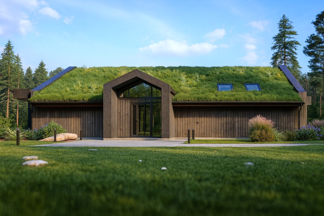 Posadowienie budynku: PŁYTA ŻELBETOWA. Ściany zewnętrzne: PUSTAK YTONG 18, WEŁNA MINERALNA 20+5, DESKOWANIE. Ściany wewnętrzne: MUROWANE – YTONG 18. Konstrukcja dachu: DREWNIANA, KRATOWNICA. Pokrycie dachu: BLACHA -TRAPEZ, DACH ZIELONY. Elewacja: DESKOWANIE, DESKI OPALANE. Wentylacja: GRAWITACYJNA. Ogrzewanie podstawowe: PRĄD, POMPA CIEPŁA, FOTOWOLTAIKA.