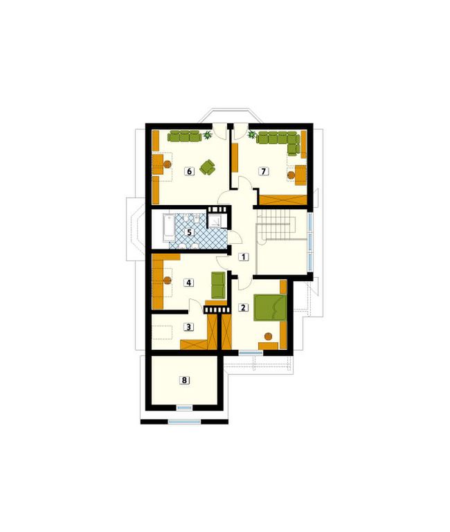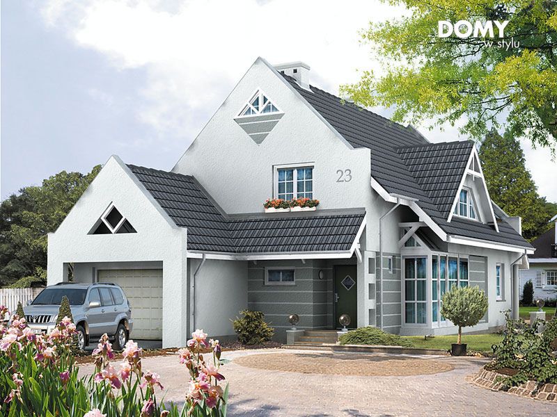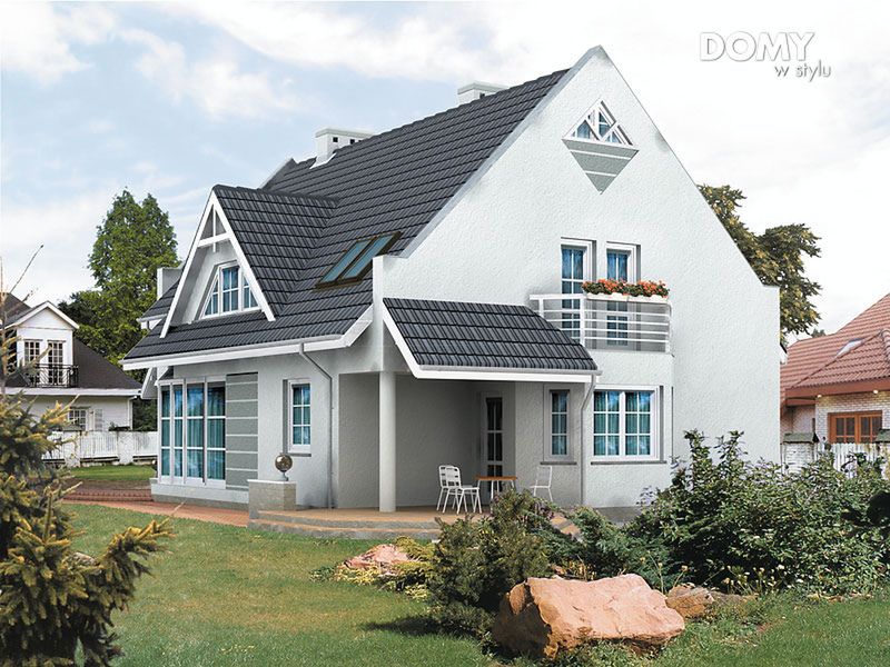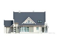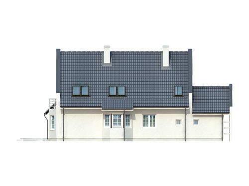 Graficzne opracowanie rzutów poglądowych widocznych na karcie projektu zostało wykonane przez Extradom.pl. Prezentowane przez Extradom.pl wizualizacje wykonane zostały przez autora projektu i należy poczytywać je jedynie za przykład i propozycję wykończenia, wizję architektoniczną autora projektu. Ostateczne wykończenie budynku może nastąpić na wiele sposobów. Szczegółowe rozwiązania zastosowane w oferowanej dokumentacji - w tym również ilość, lokalizacje i wygląd okien, drzwi, kominów - mogą w niewielkim stopniu różnić się od prezentowanej wizualizacji budynku.