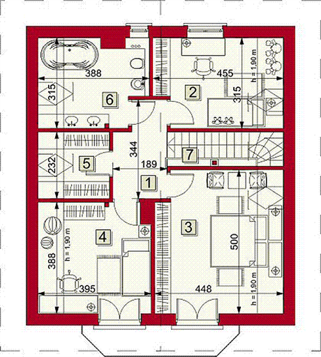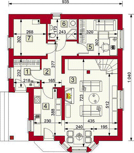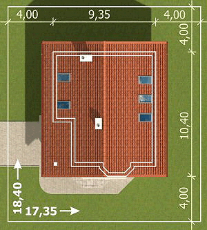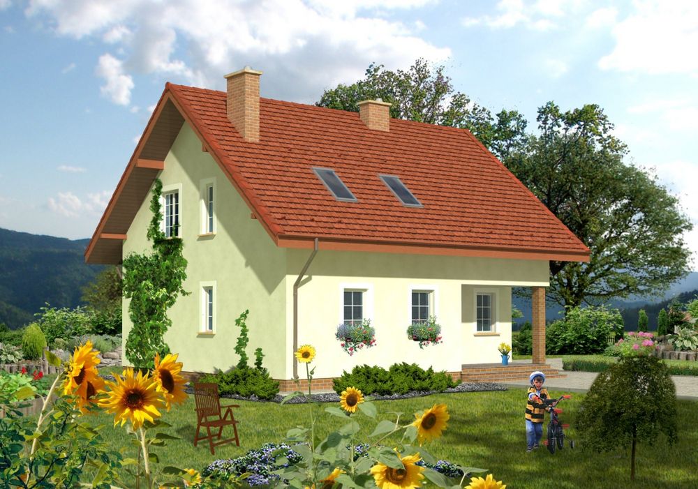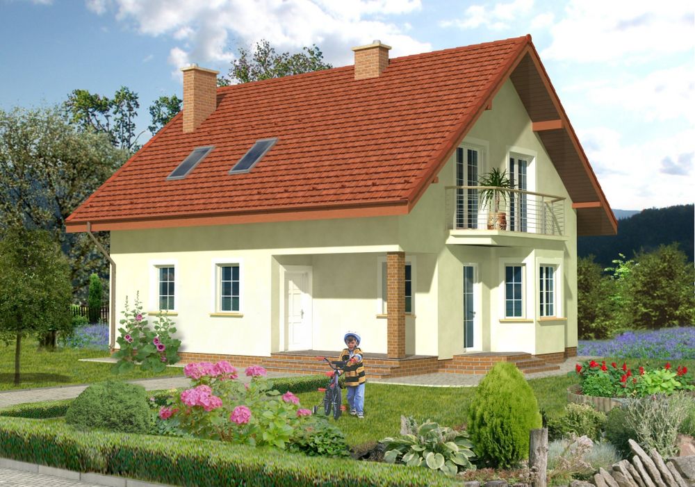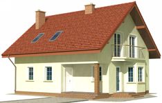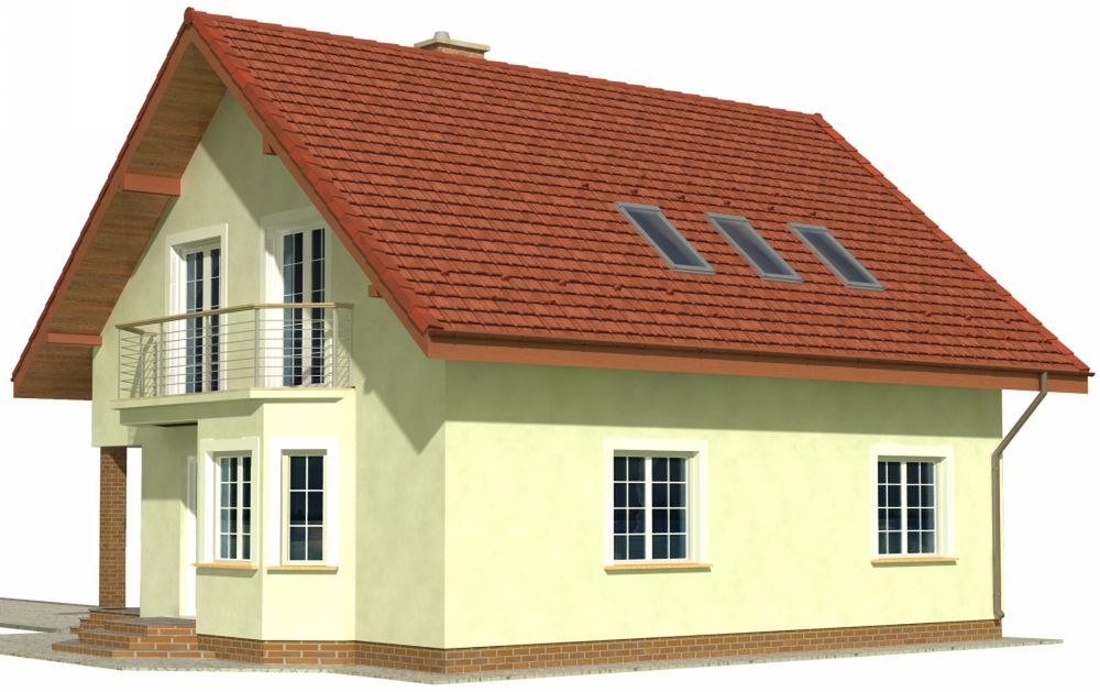 Graficzne opracowanie rzutów poglądowych widocznych na karcie projektu zostało wykonane przez Extradom.pl. Prezentowane przez Extradom.pl wizualizacje wykonane zostały przez autora projektu i należy poczytywać je jedynie za przykład i propozycję wykończenia, wizję architektoniczną autora projektu. Ostateczne wykończenie budynku może nastąpić na wiele sposobów. Szczegółowe rozwiązania zastosowane w oferowanej dokumentacji - w tym również ilość, lokalizacje i wygląd okien, drzwi, kominów - mogą w niewielkim stopniu różnić się od prezentowanej wizualizacji budynku.