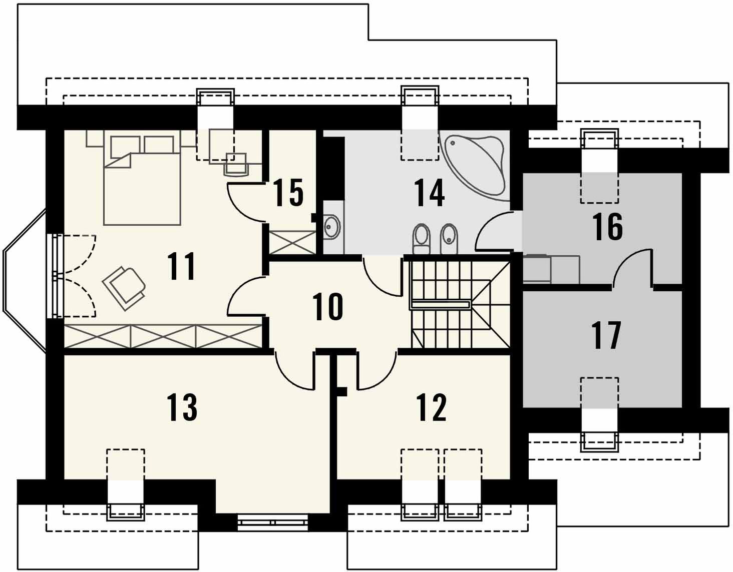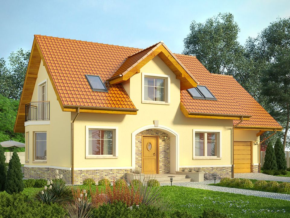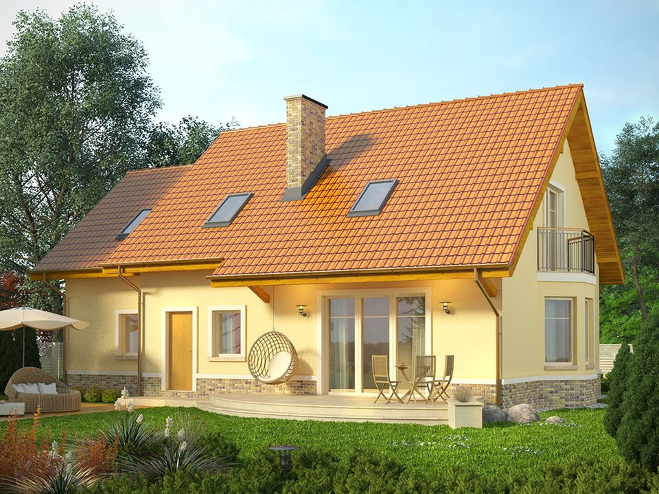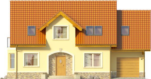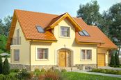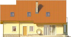 Graficzne opracowanie rzutów poglądowych widocznych na karcie projektu zostało wykonane przez Extradom.pl. Prezentowane przez Extradom.pl wizualizacje wykonane zostały przez autora projektu i należy poczytywać je jedynie za przykład i propozycję wykończenia, wizję architektoniczną autora projektu. Ostateczne wykończenie budynku może nastąpić na wiele sposobów. Szczegółowe rozwiązania zastosowane w oferowanej dokumentacji - w tym również ilość, lokalizacje i wygląd okien, drzwi, kominów - mogą w niewielkim stopniu różnić się od prezentowanej wizualizacji budynku.