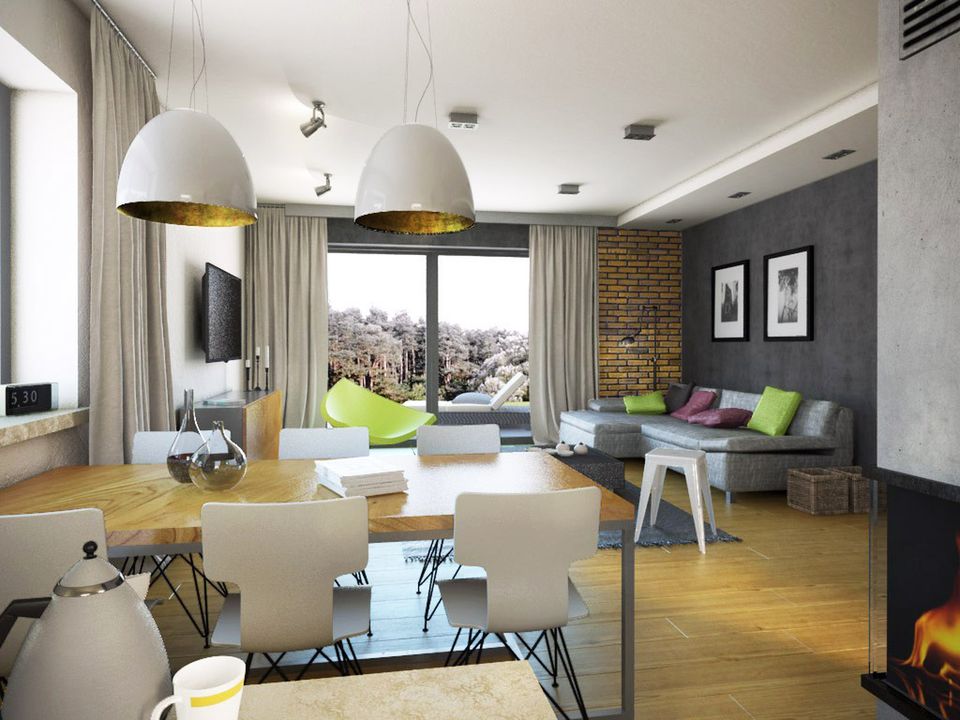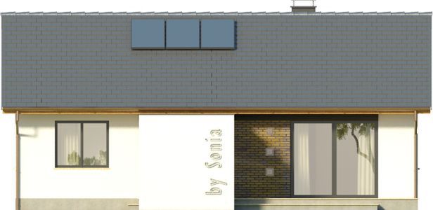 Graficzne opracowanie rzutów poglądowych widocznych na karcie projektu zostało wykonane przez Extradom.pl. Prezentowane przez Extradom.pl wizualizacje wykonane zostały przez autora projektu i należy poczytywać je jedynie za przykład i propozycję wykończenia, wizję architektoniczną autora projektu. Ostateczne wykończenie budynku może nastąpić na wiele sposobów. Szczegółowe rozwiązania zastosowane w oferowanej dokumentacji - w tym również ilość, lokalizacje i wygląd okien, drzwi, kominów - mogą w niewielkim stopniu różnić się od prezentowanej wizualizacji budynku.