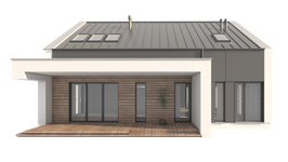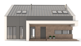 Graficzne opracowanie rzutów poglądowych widocznych na karcie projektu zostało wykonane przez Extradom.pl. Prezentowane przez Extradom.pl wizualizacje wykonane zostały przez autora projektu i należy poczytywać je jedynie za przykład i propozycję wykończenia, wizję architektoniczną autora projektu. Ostateczne wykończenie budynku może nastąpić na wiele sposobów. Szczegółowe rozwiązania zastosowane w oferowanej dokumentacji - w tym również ilość, lokalizacje i wygląd okien, drzwi, kominów - mogą w niewielkim stopniu różnić się od prezentowanej wizualizacji budynku.