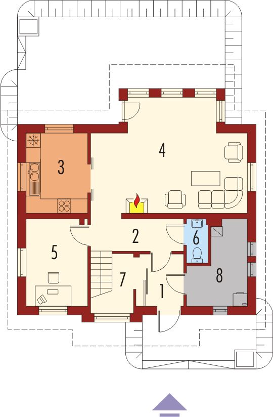 Graficzne opracowanie rzutów poglądowych widocznych na karcie projektu zostało wykonane przez Extradom.pl. Prezentowane przez Extradom.pl wizualizacje wykonane zostały przez autora projektu i należy poczytywać je jedynie za przykład i propozycję wykończenia, wizję architektoniczną autora projektu. Ostateczne wykończenie budynku może nastąpić na wiele sposobów. Szczegółowe rozwiązania zastosowane w oferowanej dokumentacji - w tym również ilość, lokalizacje i wygląd okien, drzwi, kominów - mogą w niewielkim stopniu różnić się od prezentowanej wizualizacji budynku.