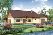 Fundamenty: bezpośrednie, na ławach fundamentowych. Ściany zewnętrzne: bloczki z bet. komórkowego - 24 cm + styropian TERMO ORGANIKA typ Fasada 16 cm. Ściany wewnętrzne: bloczki z bet. komórkowego - 24 cm (działowe - 12 cm). Strop: gęstożebrowy Teriva E oraz żelbetowy monolityczny gr. 20 i 24 cm. Elewacje: tynk - System Platinum firmy TERMO ORGANIKA, płytki klinkierowe, deska elewacyjna. Pokrycie dachu: dachówka cementowa. Konstrukcja dachu: drewniana o układzie konstrukcyjnym mieszanym. Schody wewnętrzne: wyłaz na poddasze. Ogrzewanie: kocioł gazowy kondensacyjny lub na paliwo stałe (biomasa/ekogroszek), dodatkowe źródło ciepła - kominek z płaszczem wodnym. Projekt jest zgodny z wymaganiami WT2021, a konstrukcja była obliczana zgodnie z eurokodami. W projekcie dodatkowo zastosowano instalację solarną.