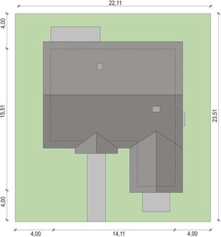 Graficzne opracowanie rzutów poglądowych widocznych na karcie projektu zostało wykonane przez Extradom.pl. Prezentowane przez Extradom.pl wizualizacje wykonane zostały przez autora projektu i należy poczytywać je jedynie za przykład i propozycję wykończenia, wizję architektoniczną autora projektu. Ostateczne wykończenie budynku może nastąpić na wiele sposobów. Szczegółowe rozwiązania zastosowane w oferowanej dokumentacji - w tym również ilość, lokalizacje i wygląd okien, drzwi, kominów - mogą w niewielkim stopniu różnić się od prezentowanej wizualizacji budynku.