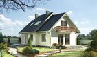 Graficzne opracowanie rzutów poglądowych widocznych na karcie projektu zostało wykonane przez Extradom.pl. Prezentowane przez Extradom.pl wizualizacje wykonane zostały przez autora projektu i należy poczytywać je jedynie za przykład i propozycję wykończenia, wizję architektoniczną autora projektu. Ostateczne wykończenie budynku może nastąpić na wiele sposobów. Szczegółowe rozwiązania zastosowane w oferowanej dokumentacji - w tym również ilość, lokalizacje i wygląd okien, drzwi, kominów - mogą w niewielkim stopniu różnić się od prezentowanej wizualizacji budynku.