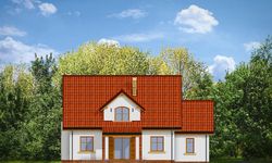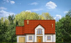 Graficzne opracowanie rzutów poglądowych widocznych na karcie projektu zostało wykonane przez Extradom.pl. Prezentowane przez Extradom.pl wizualizacje wykonane zostały przez autora projektu i należy poczytywać je jedynie za przykład i propozycję wykończenia, wizję architektoniczną autora projektu. Ostateczne wykończenie budynku może nastąpić na wiele sposobów. Szczegółowe rozwiązania zastosowane w oferowanej dokumentacji - w tym również ilość, lokalizacje i wygląd okien, drzwi, kominów - mogą w niewielkim stopniu różnić się od prezentowanej wizualizacji budynku.