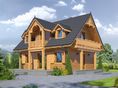 Graficzne opracowanie rzutów poglądowych widocznych na karcie projektu zostało wykonane przez Extradom.pl. Prezentowane przez Extradom.pl wizualizacje wykonane zostały przez autora projektu i należy poczytywać je jedynie za przykład i propozycję wykończenia, wizję architektoniczną autora projektu. Ostateczne wykończenie budynku może nastąpić na wiele sposobów. Szczegółowe rozwiązania zastosowane w oferowanej dokumentacji - w tym również ilość, lokalizacje i wygląd okien, drzwi, kominów - mogą w niewielkim stopniu różnić się od prezentowanej wizualizacji budynku.